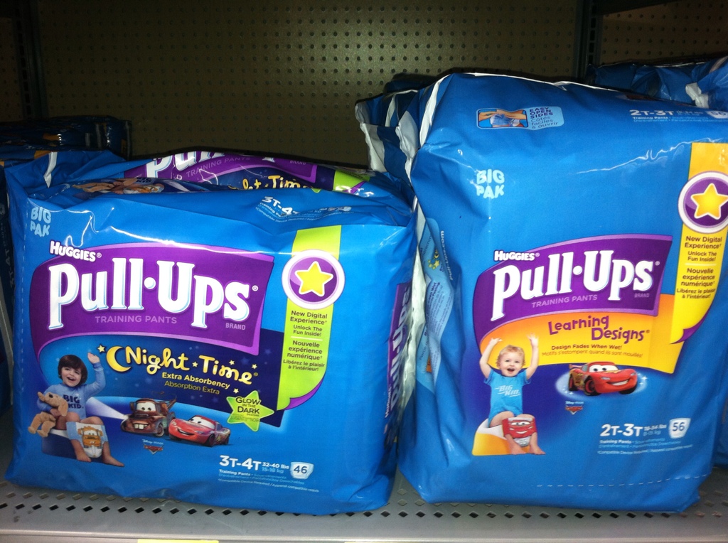 If you are wanting to use pull-ups, Walmart has Huggies on rollback right now in stores and online for $8.97 a package! They also have Night Time Pull-Ups that are extra absorbent.