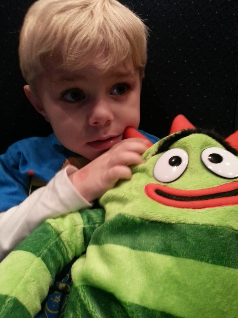 My tip for going to the show: make sure you bring cash! All theaters won’t have the same parking rules but the one we went to in Chicago had a “cash only” parking lot with no signs about it until you had pulled up to the ticket booth. Needless to say it was a huge hassle and there was a line at the ATM across the street. {It should be noted that the licensed Yo Gabba Gabba! items being sold inside could be purchased with a debit/credit card.} Thankfully the parking issue didn’t ruin the experience for us and we still greatly enjoyed the show and our night out.
