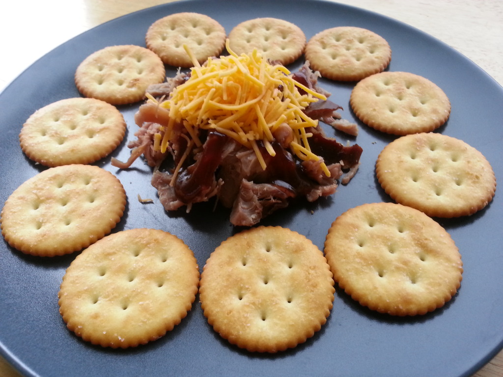 Do you like how I made a little campfire with my food? :) I normally don’t eat such nicely displayed food but pulled pork on crackers is my favorite way to enjoy the meat. Oscar Mayer makes a few different varieties of the pulled pork but my favorite is the plain with no seasonings. I add some barbeque sauce and shredded cheese and I have a quick and easy lunch in minutes.