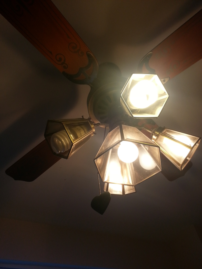 wow – that difference between the bulbs is crazy! I know you’re not thrilled with the ceiling fan you have – but I have to say, I love how many bulbs it uses!