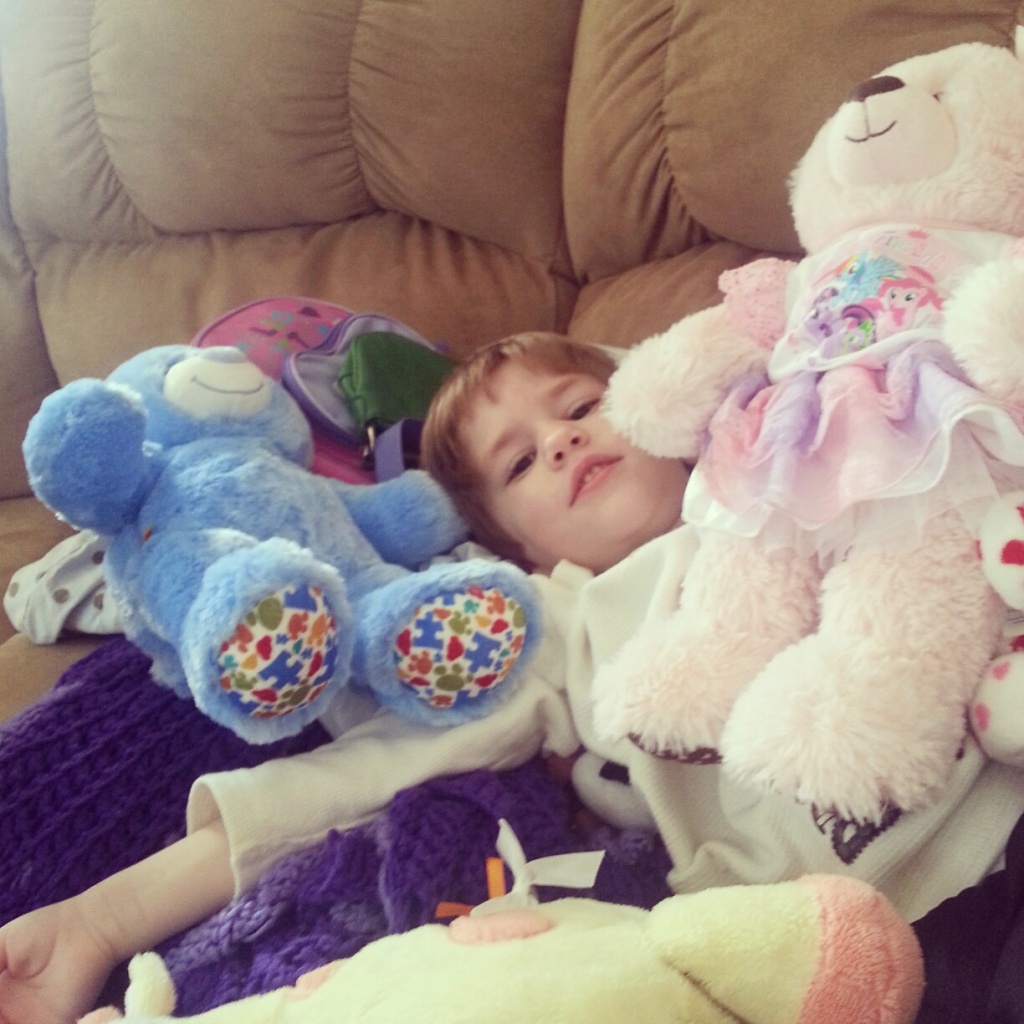 Soccer was cancelled the other day due to rain so we headed to Build A Bear to pickup their Autism Awareness Bear. Lucas and Jacob each wanted something different so I got the bear we went for, Lucas got a pink one with a My Little Pony outfit, and Jacob got a white bear in an Iron Man outfit.