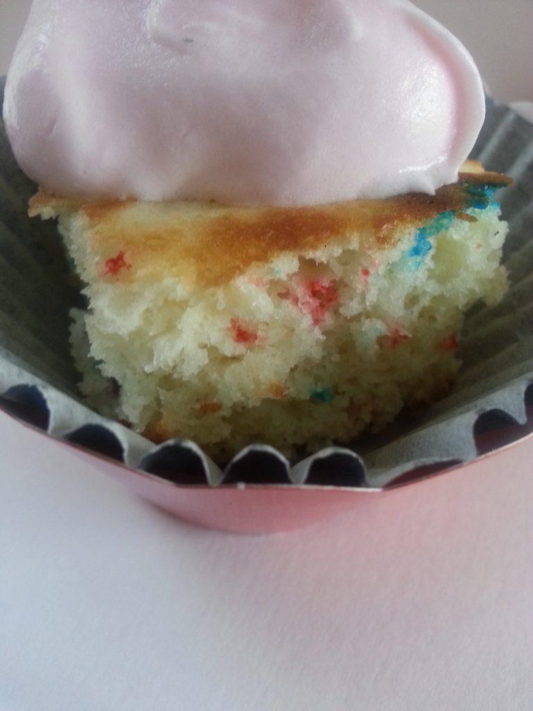 The maker comes with a booklet of recipes which I didn’t have much luck with but I learned that I could use box mixes which was easier to do and tasted better. I used a fun confetti mix left over from the 4th of July. The mix took only a few minutes to put together and just about 7 minutes in the pound cake maker. There is no timer on the maker so I used my microwave timer to time it. The boxed mix made 5 pound cake “loaves”.