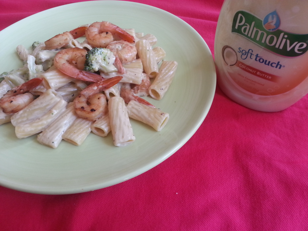 Palmolive reached out to me and challenged me to create a meal with the colors of their new line of dish soap. The colors were white, green, and pink. After thinking about it, Sinisa and I decided on shrimp alfredo with broccoli. Asparagus would also work well in this recipe if you aren’t a fan of broccoli. Below the recipe you will find my thoughts on Palmolive’s new line of soaps that I washed the dishes with.