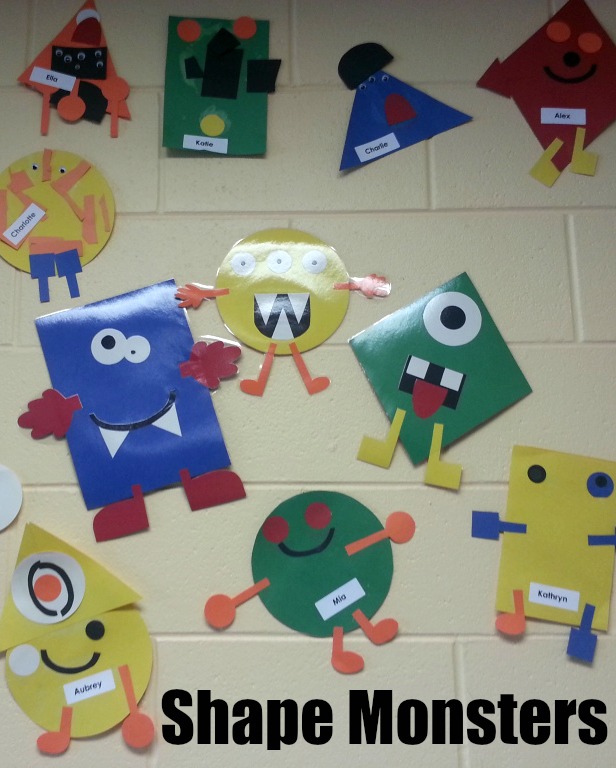 I teach Sunday School and it’s held in a preschool classroom. I couldn’t resist the cuteness of these shape monsters on the wall! How adorable are they?