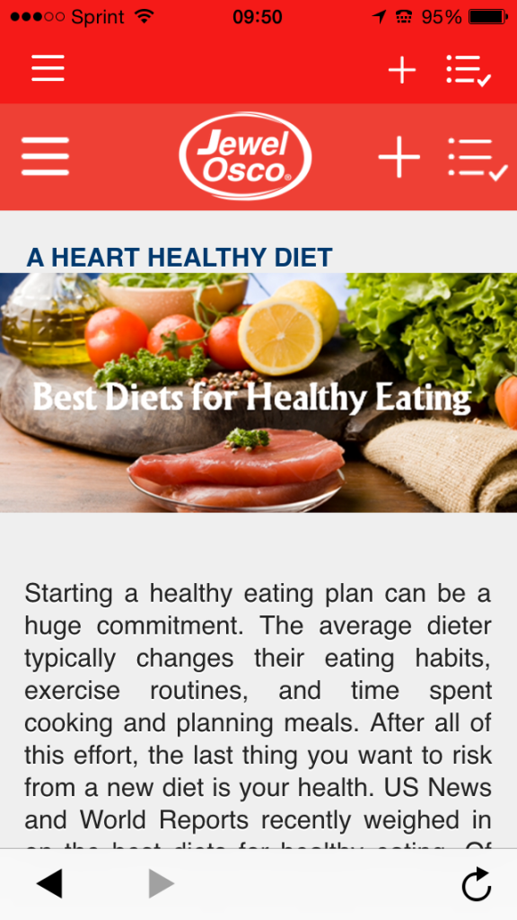MyMixx has featured recipes and all sorts of categories, so there is something for everyone. I love that I can browse recipes and instantly create a shopping list and find coupons to save money all at once at Jewel. Â There is also a section called What’s Cooking. There you can find articles and recipes and news on healthy living, special diets and organic foods. You can also learn about special food events happening at your local Jewel.