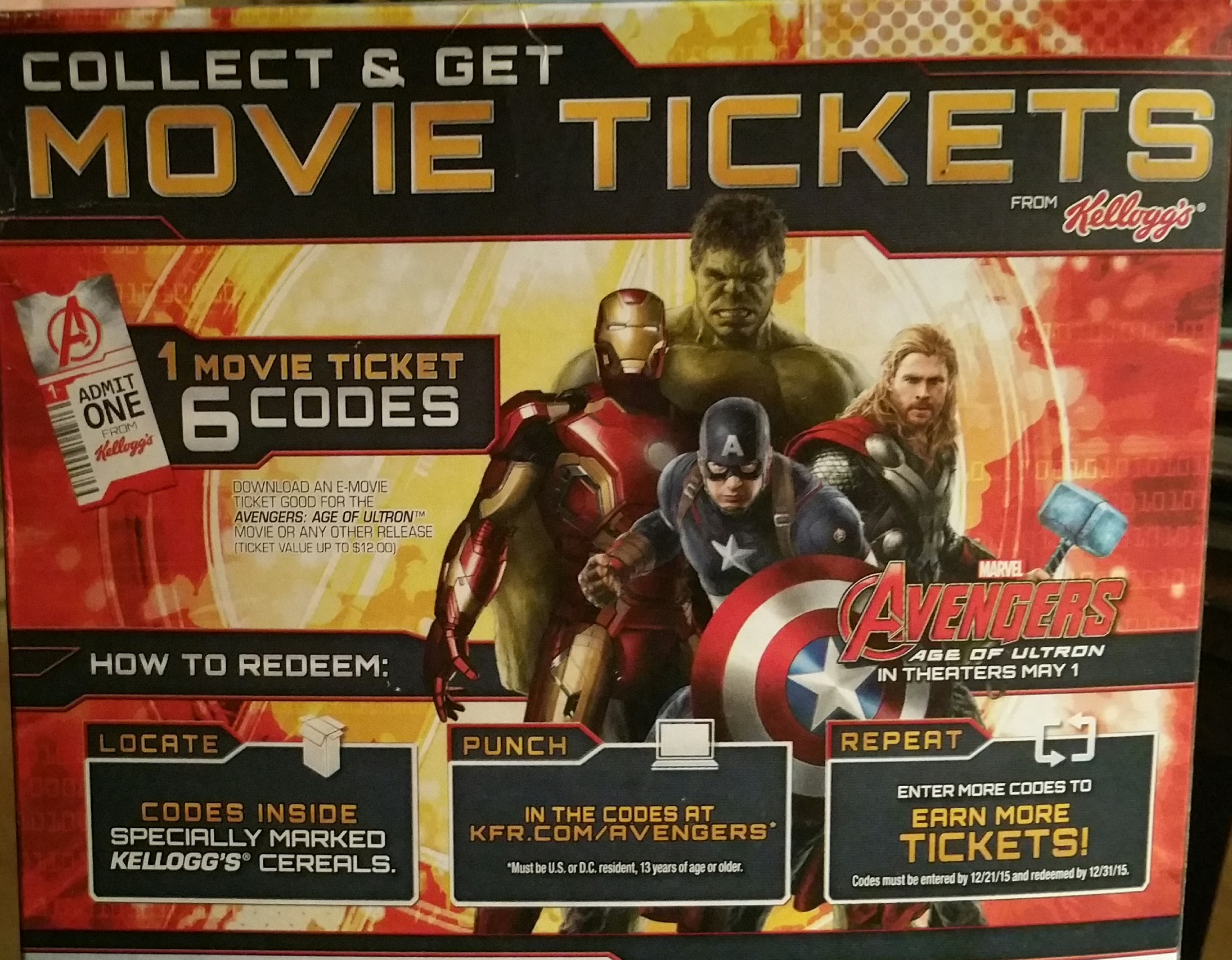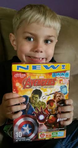 My older son Jake was quick to find the Avengers fruit snacks and just had to have them. Luke my youngest hit the cereal aisle and pointed out that there were lots of Kellogg’s cereal boxes with Avengers images on them. Both boys wanted to buy multiple boxes each because they learned they could get free movie tickets. For every six codes collected we could get a ticket to see the movie they are so excited to see.