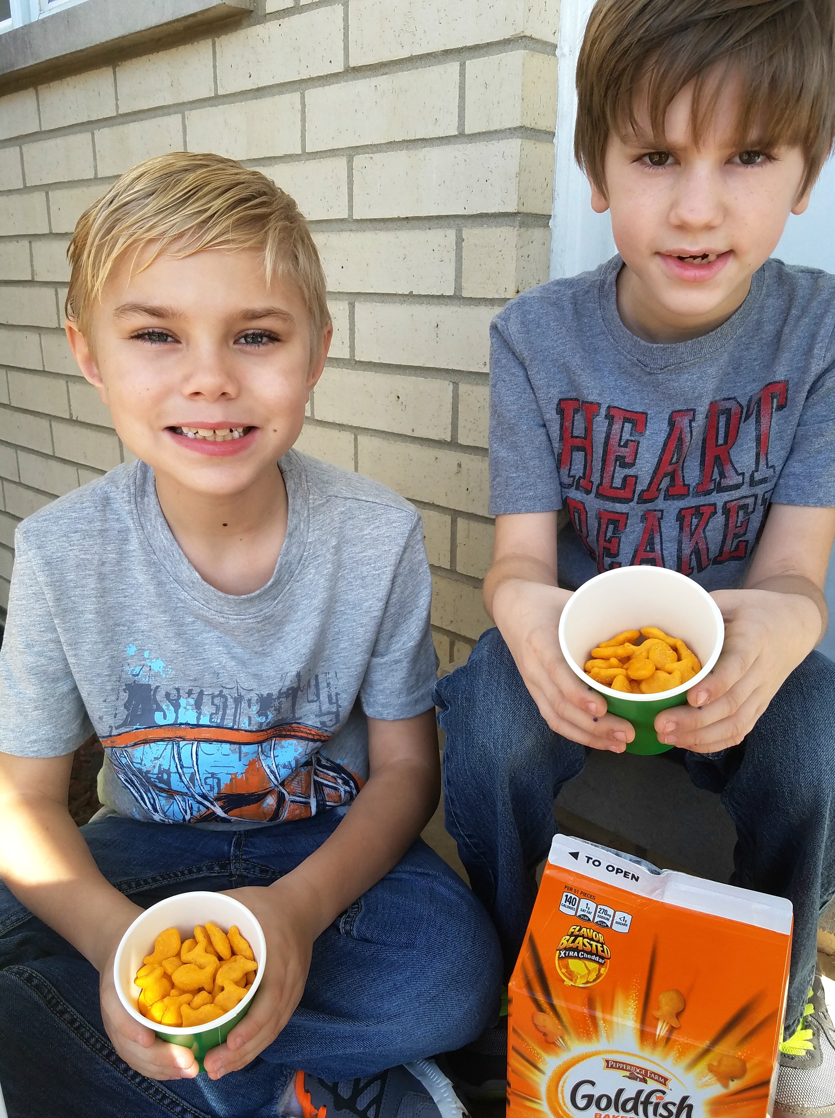 After an afternoon full of building their obstacle course and going through it numerous times they enjoyed some more Goldfish® crackers before it was time to head inside.