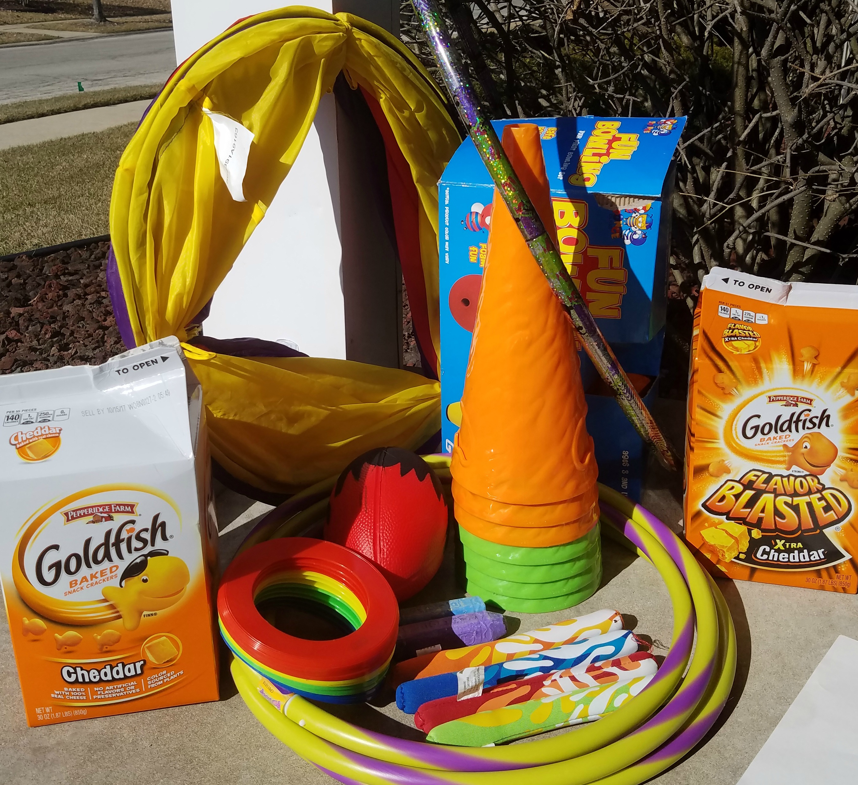 After enjoying a “heat wave” in February I feel like warmer weather will be here to stay soon! With this in mind, I wanted to share a fun outdoor activity you can do with your kids this Spring. My boys and I went to Walmart to buy some outdoor toys and Goldfish® crackers (in the Cheddar flavor and the Xtra Cheddar flavor) and then we headed home for a fun afternoon.