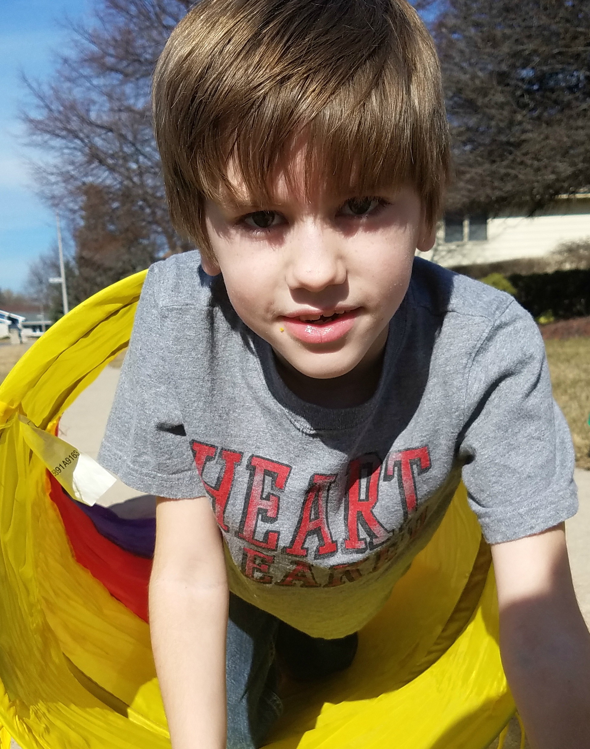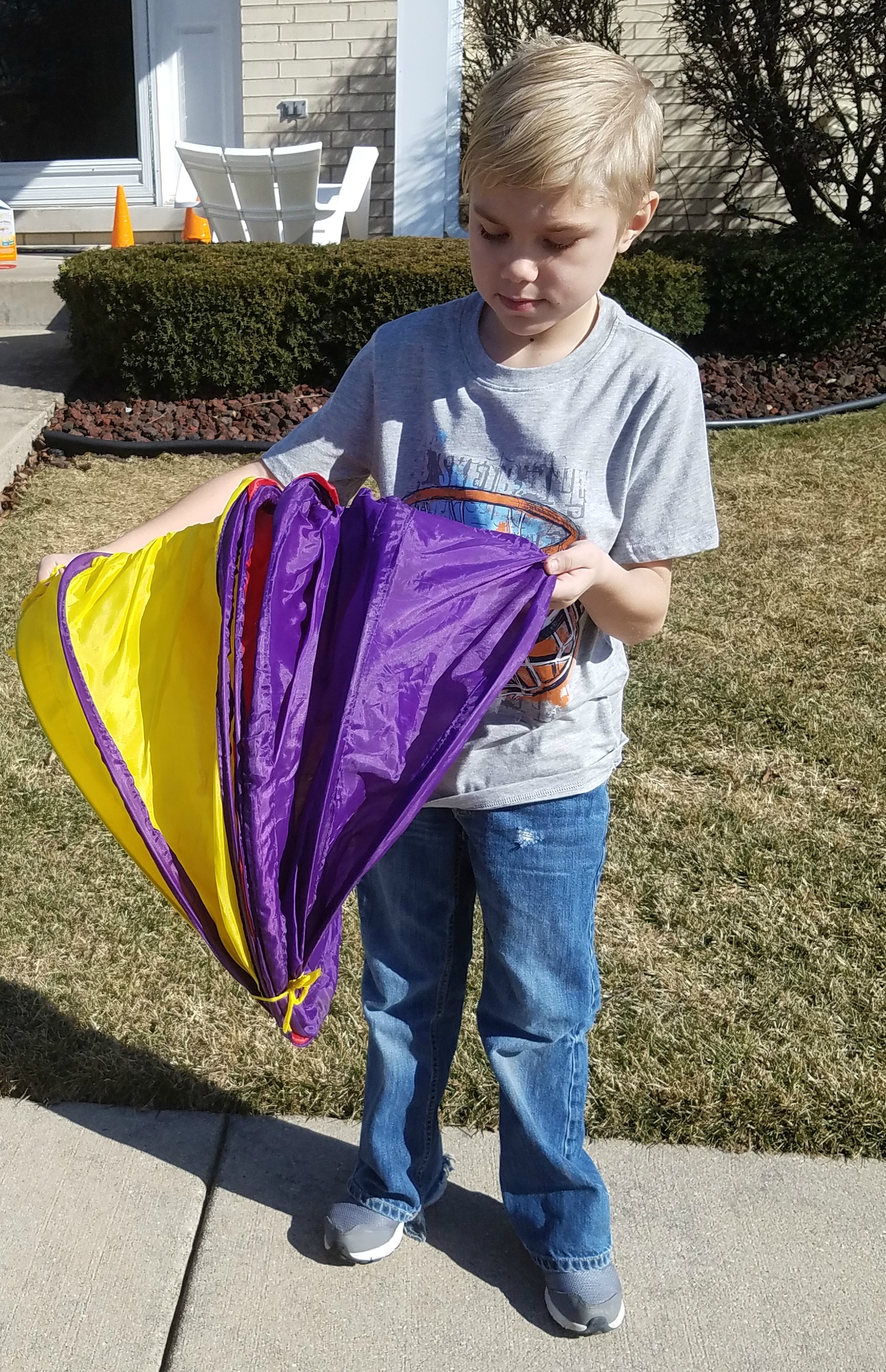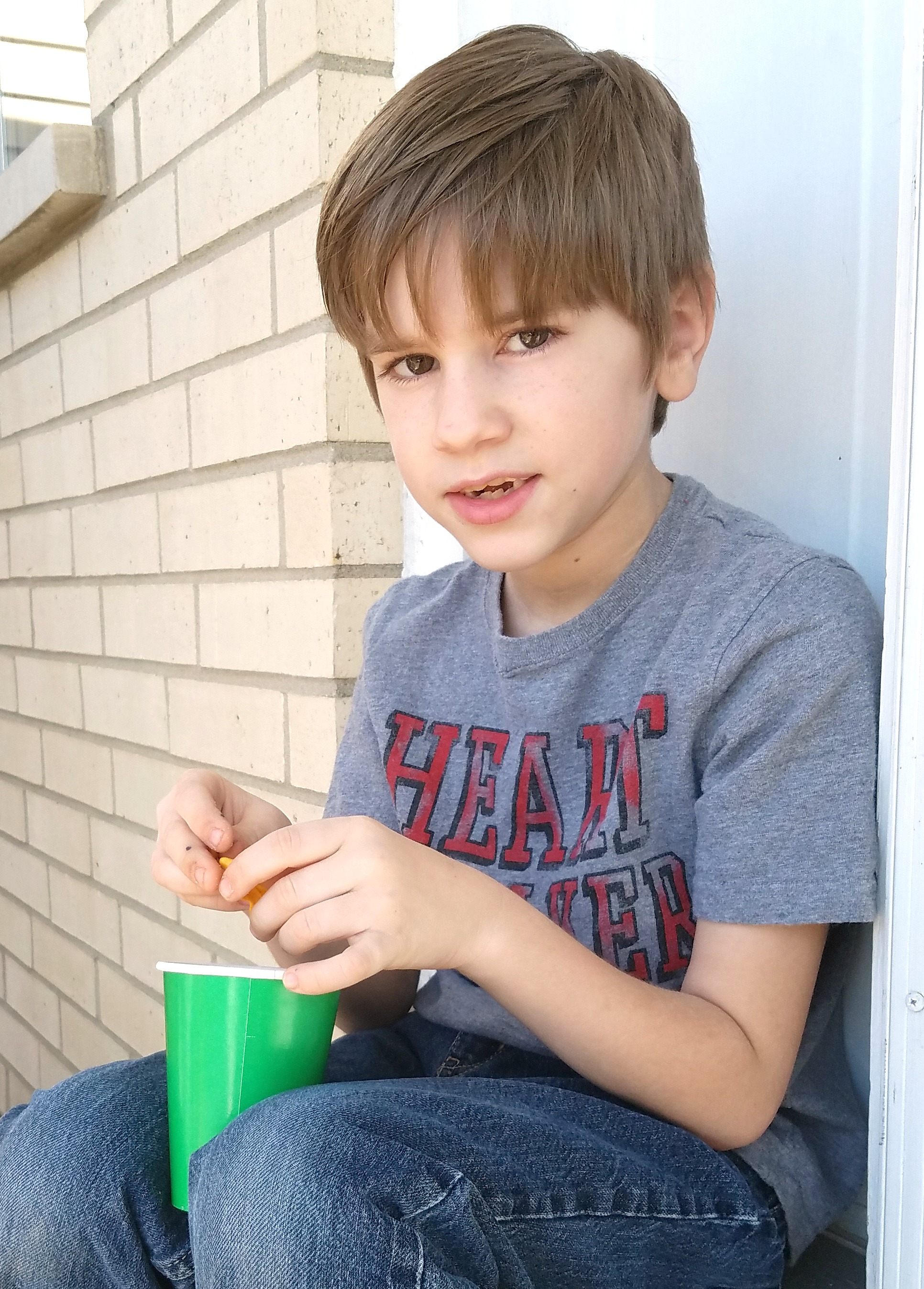 Jacob made sure to eat some of his snack as well before they headed out to the front yard to complete the next step of the process- creation of the obstacle course!