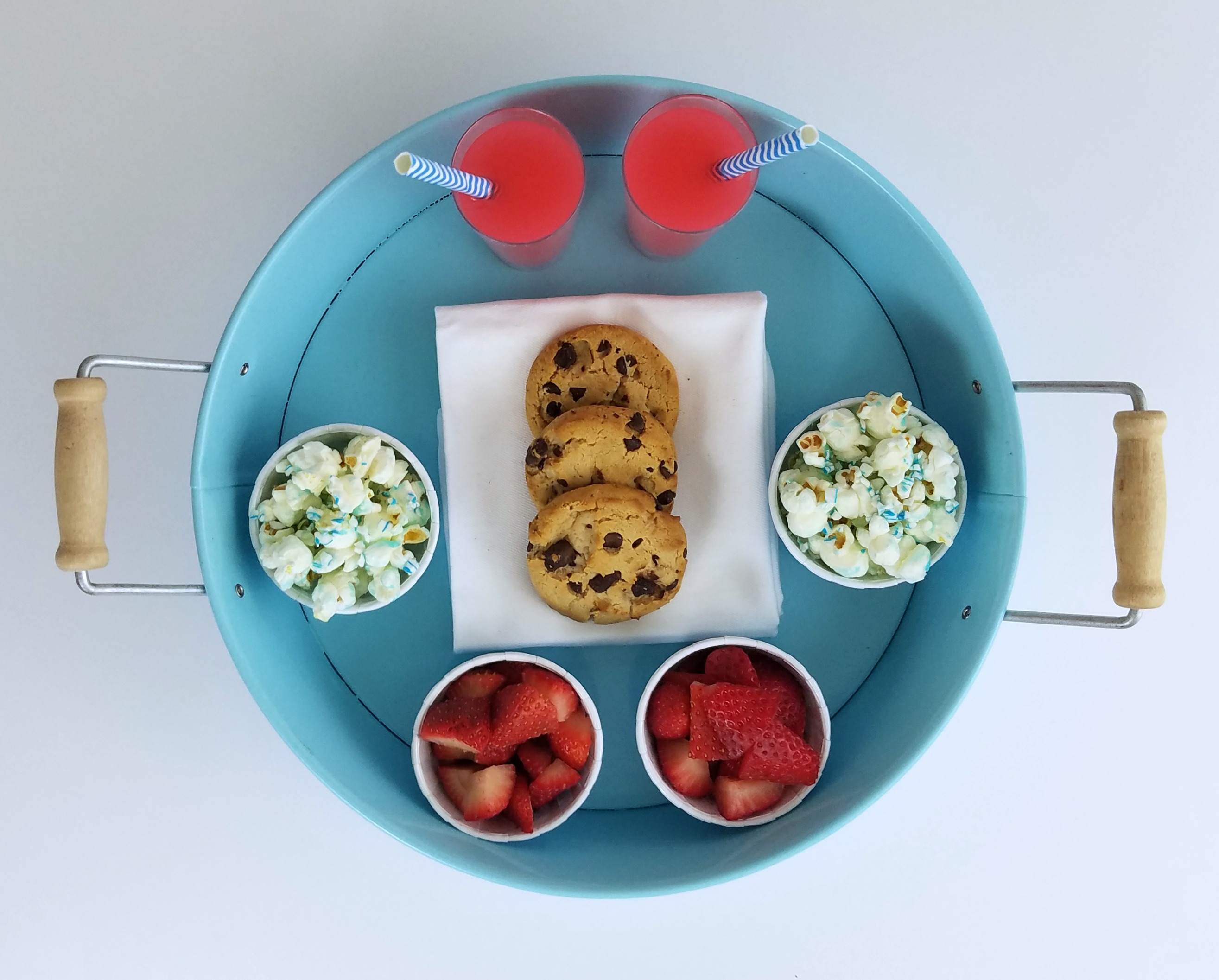 For snacks we had cookies, popcorn and strawberries. If you watch the trailer for DreamWorks The Boss Baby movie you will see why I chose to add cookies to this movie night. My boys really laughed at the cookie scene in the trailer so I thought it would be fun to recreate it during our movie night :)