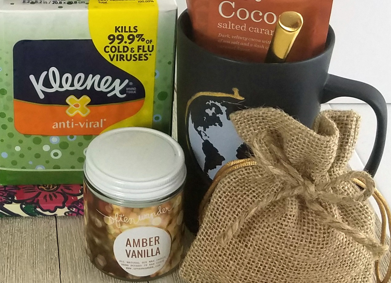 Along with bringing food and offering a listening ear, a couple other ideas that might help a friend out when they are sick would be offering to watch their children or offering to help with any errands or work they might need assistance with. Another way to let a friend know you care about them is by creating a gift basket to cheer them up and help them feel better. I thought about what things might be good to include and wanted to share what I came up with.