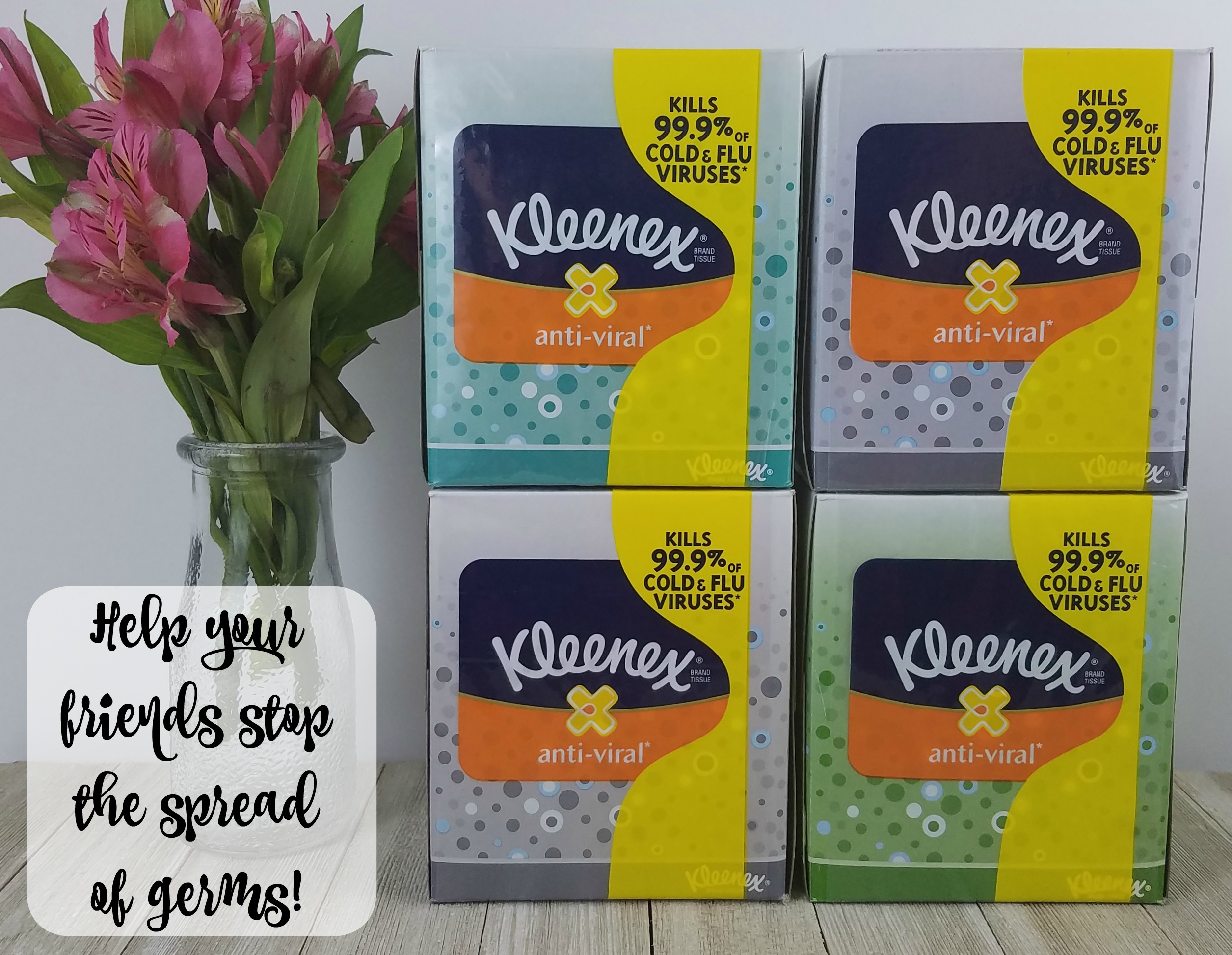 Kleenex – Most of the time I’m sick the one thing I use the most is tissues. I found a four pack of Kleenex Anti-viral facial tissues at Walmart which lets your friend (or you!) be able to keep a box of tissues everywhere they might be needed- whether it’s on the nightstand or next to the couch. These Kleenex are great because the active ingredients in the middle layer of this 3-ply tissue kill 99.9% of cold and flu viruses* in the tissue within 15 minutes. As moms, the last thing we want is for our kids to get sick, too, so the added anti-viral feature of these Kleenex is helpful in reducing the spread of germs to our families.