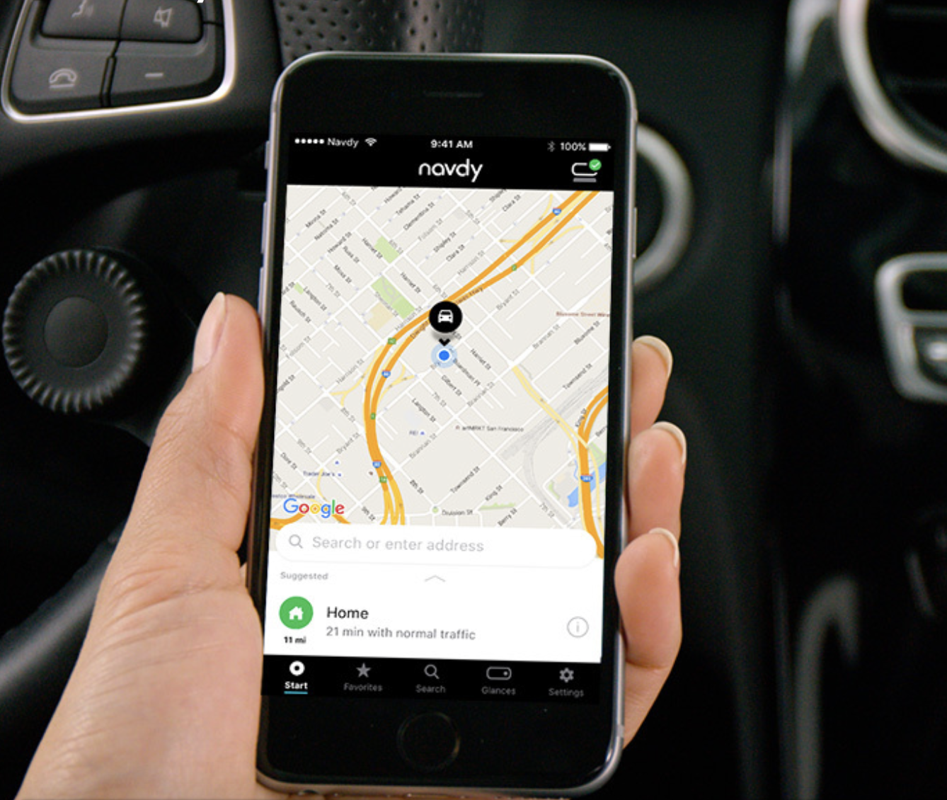 Google Maps- The navigation is what I use Navdy for the most. For years I used a GPS but every time I had to look at the map I needed to take my eyes off the road. With Navdy the map is in front of me, which means that I can follow the map without having to look away from the road. I like that I can zoom in and out with a turn of the steering wheel dial. Navdy also makes it easy to search for destinations, routes, and traffic, even while you are offline.