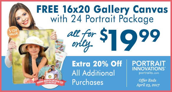 Portrait Innovations is offering their best spring special ever. The Spring 24 Portrait Package is only $19.99 plus a Free $100 16×20 Canvas with this coupon!