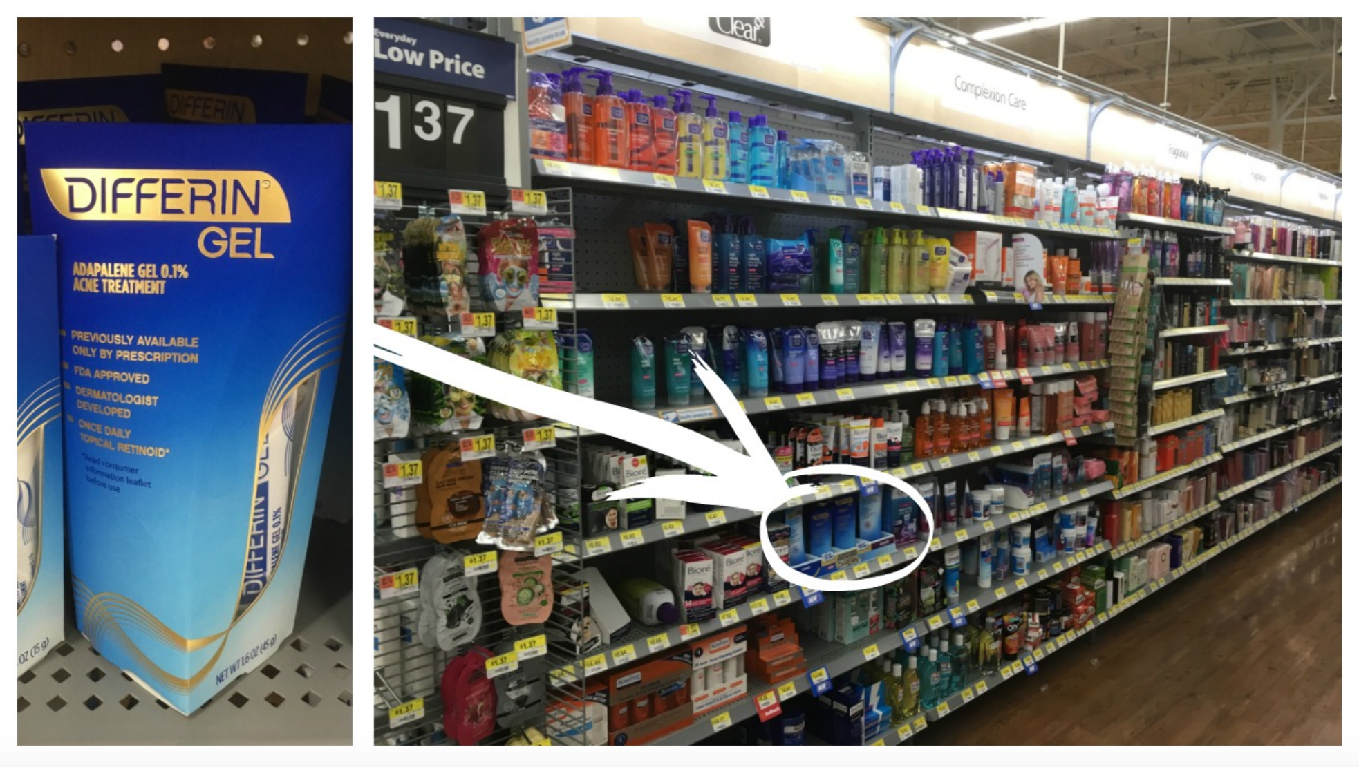 You can find Differin® Gel, along with Differin® Balancing Cleanser and Differin® Balancing Moisturizer, in the complexion care aisle at Walmart. Differin® Gel contains the dermatologist recommended retinoid, Adapalene. It’s the newest advancement and ingredient in the OTC acne category in over 30 years so if you feel like nothing has worked yet you should try this! Make sure that when you use it, you apply a thin layer all over your face once daily. Please use caution when using Differin® Gel with more than one acne treatment or glycolic acid product because this could lead to irritation.