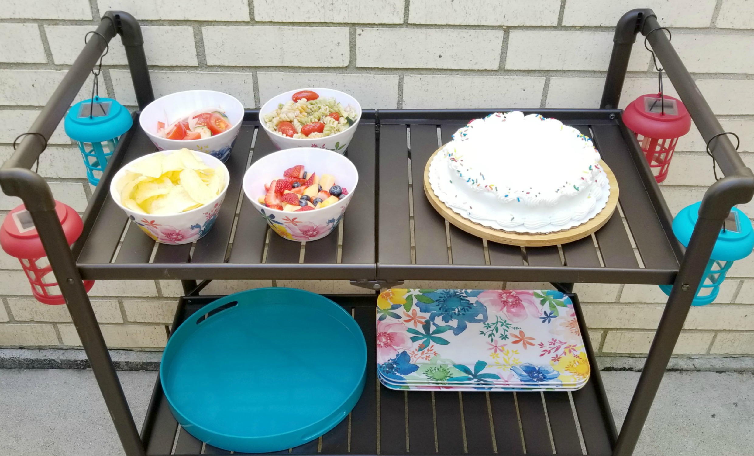 Having a serving cart is helpful when you are entertaining because it gives guests more room at the table. (It’s also a great place to keep dessert away from little ones that want to taste test the icing :) lol)