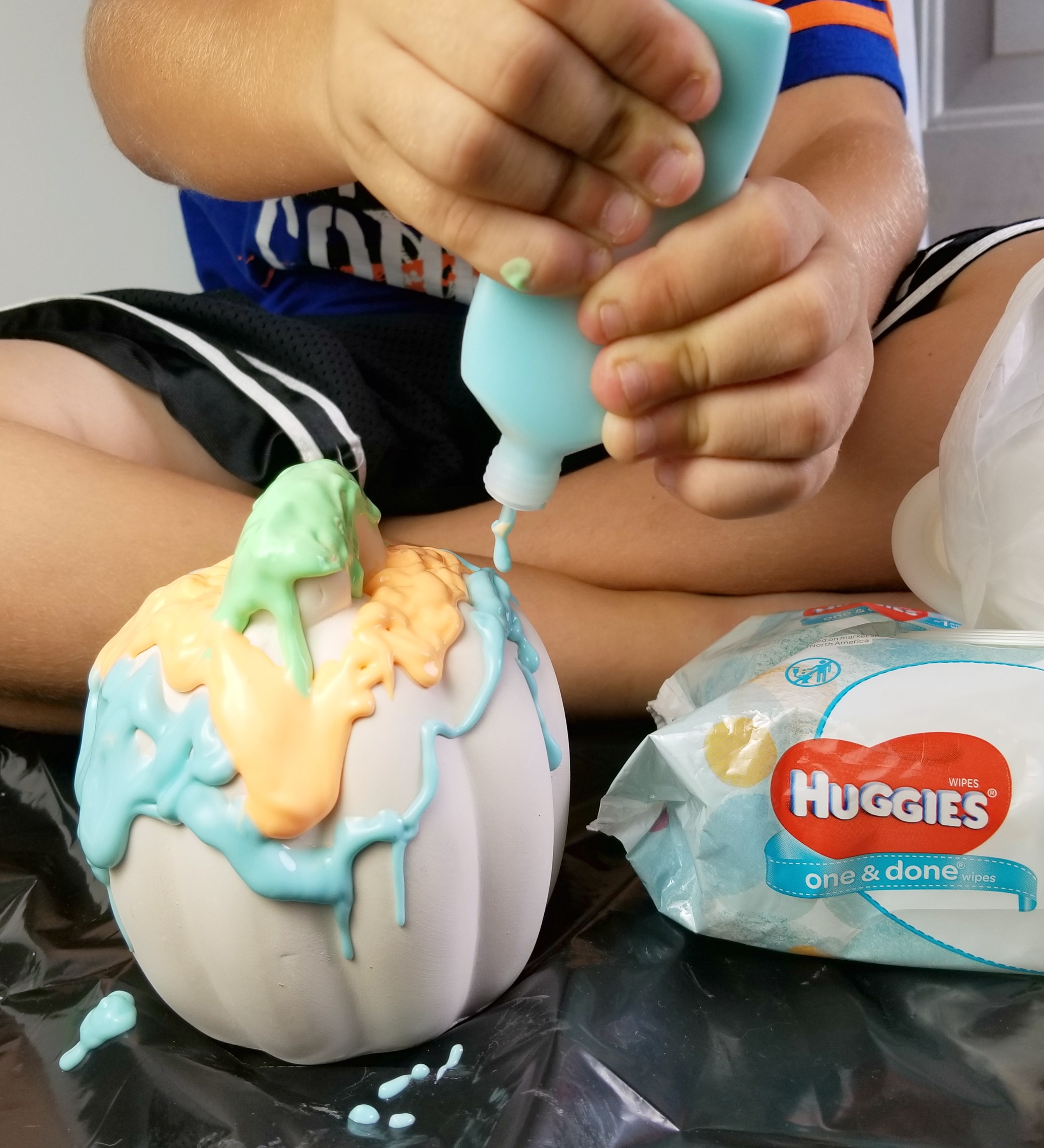 This is such a cute idea to decorate pumpkins. I will have to grab some supplies to make some for Halloween. Huggies One and Done Wipes are great for cleanups. I always keep some in the car for emergencies.