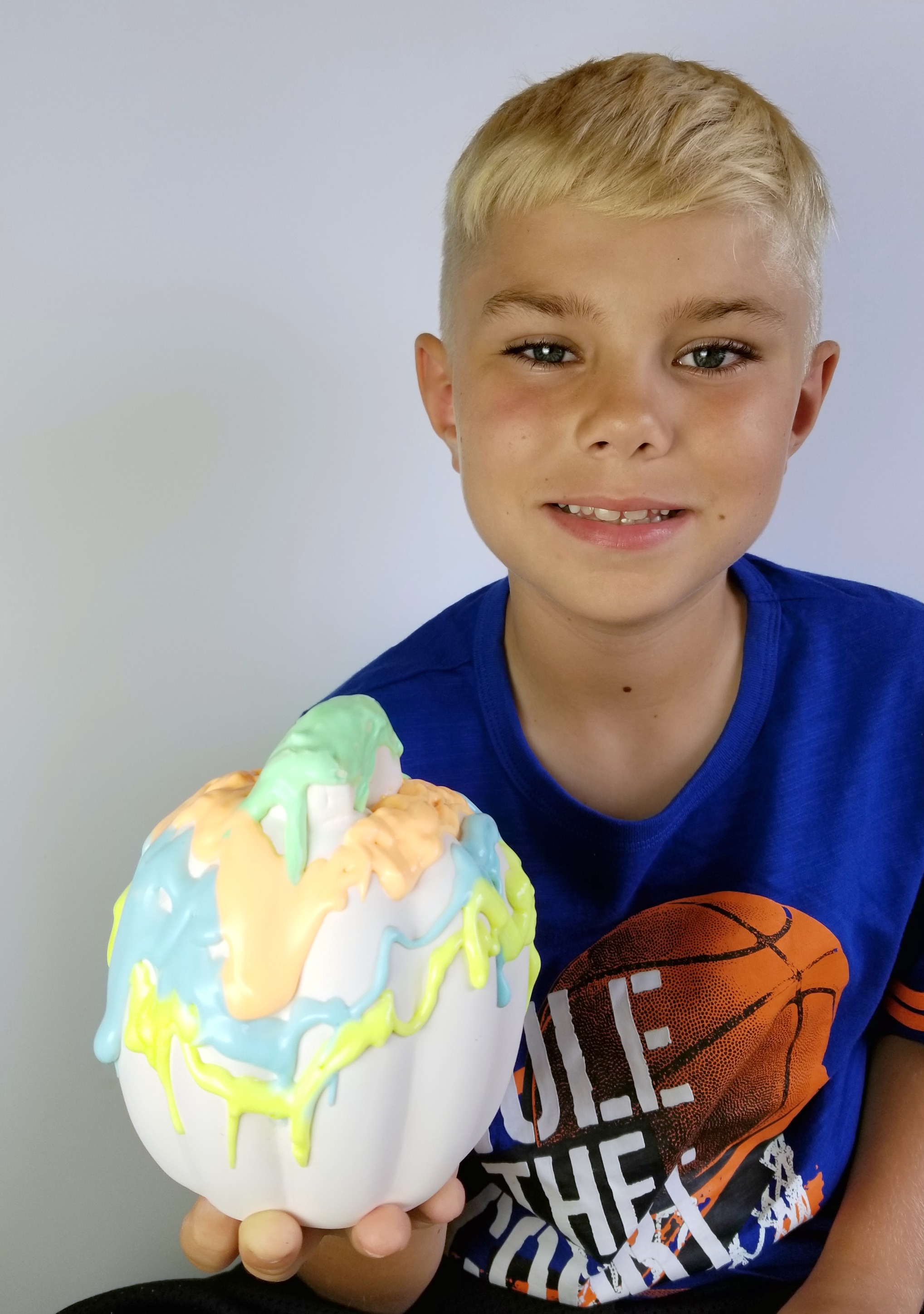 Lucas created chunks of colors on his pumpkin while Jacob was (I think) trying to create rings of color around his.