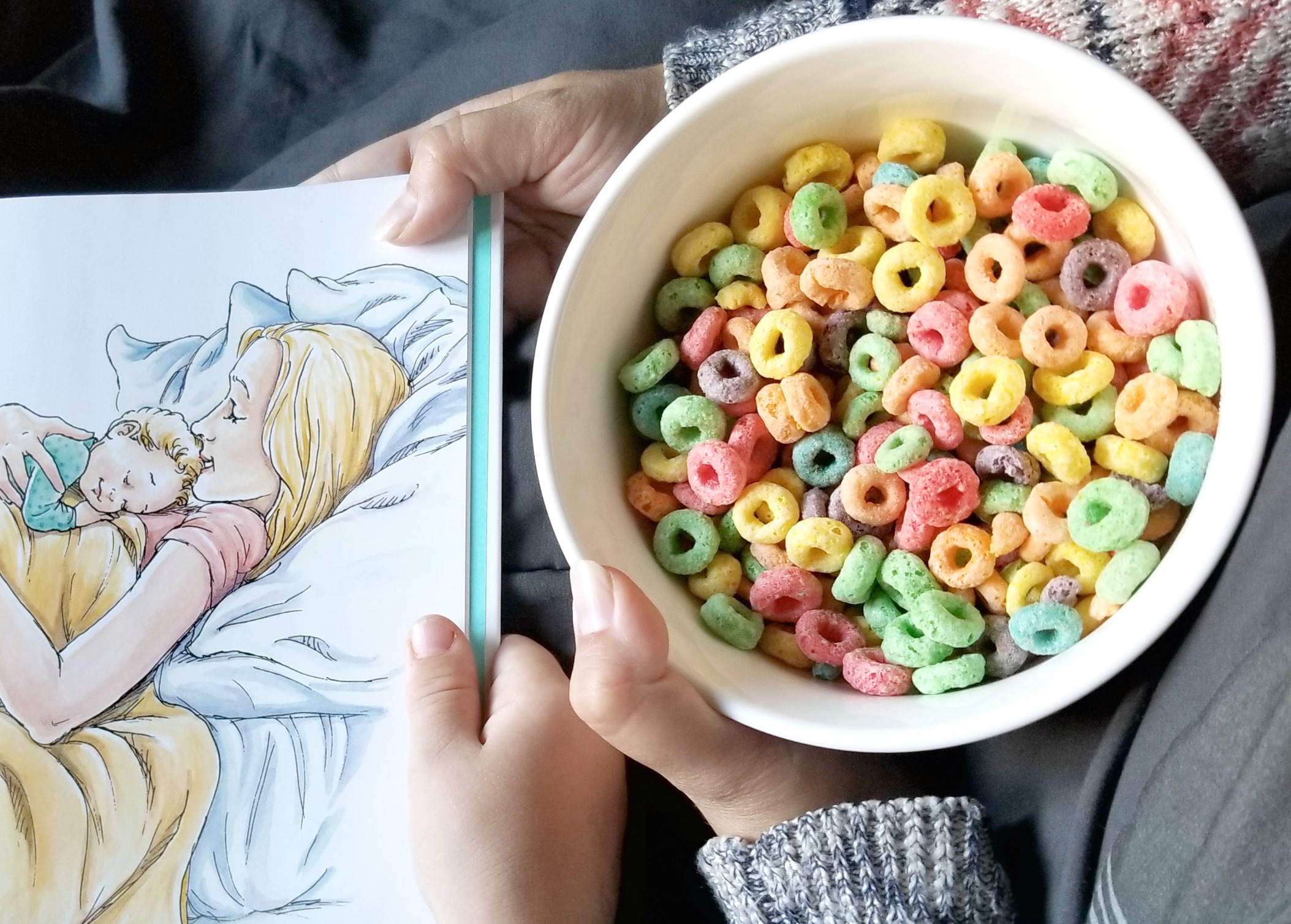I was just talking to a mom yesterday about how our kid’s favorite part of their sports team seemed to be the snack at the end of the game and how they both looked forward to that every week. As silly as it sounds, snacks are important to kids- whether it’s their game day snack or their after school snack- so reading during snack time can make it more enjoyable (especially for reluctant readers). Our favorite snacks are ones that are easy and mess free- like bowls of colorful Kellogg’s® Froot Loops® Cereal.