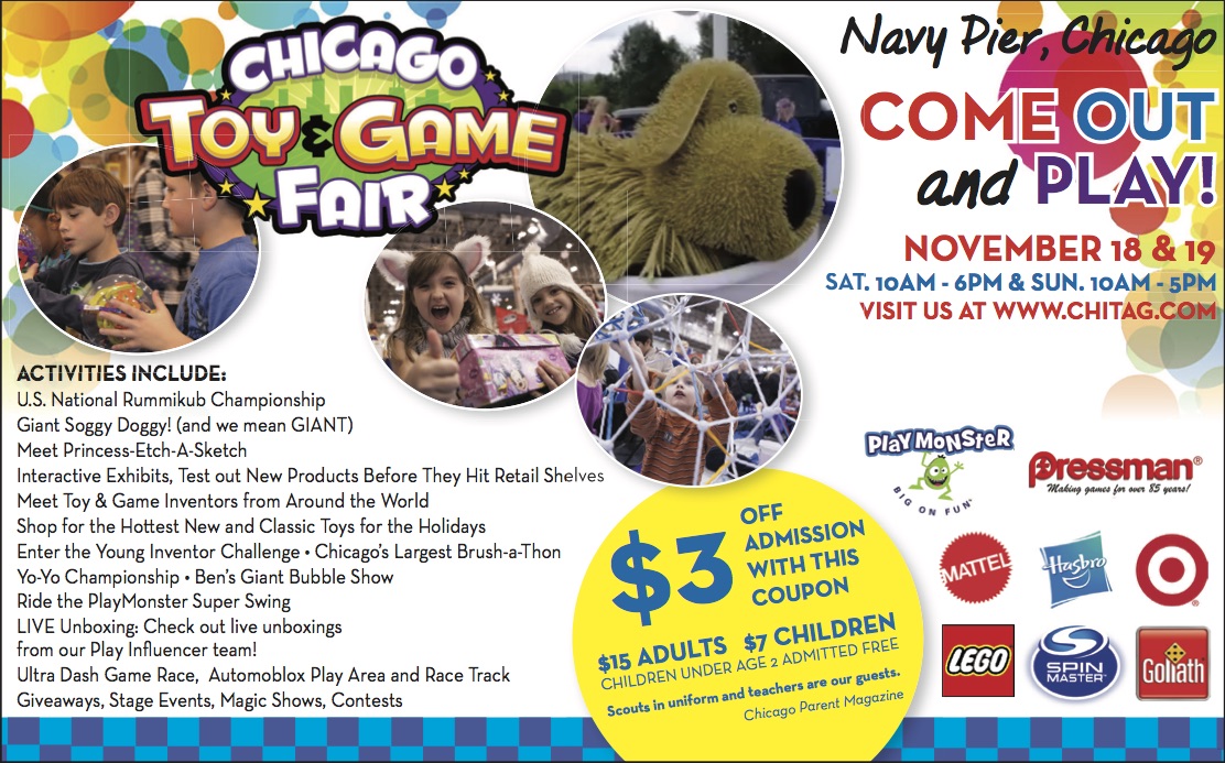 The Chicago Toy & Game Fair (ChiTAG) is coming back to Chicago next month! This is, by far, one of my boys’ favorite events of the year. Imagine an expo hall full of fun games and toys to check out. As a parent, I love it because I can get some ideas for Christmas presents and buy them at wholesale prices while we are at the fair.
