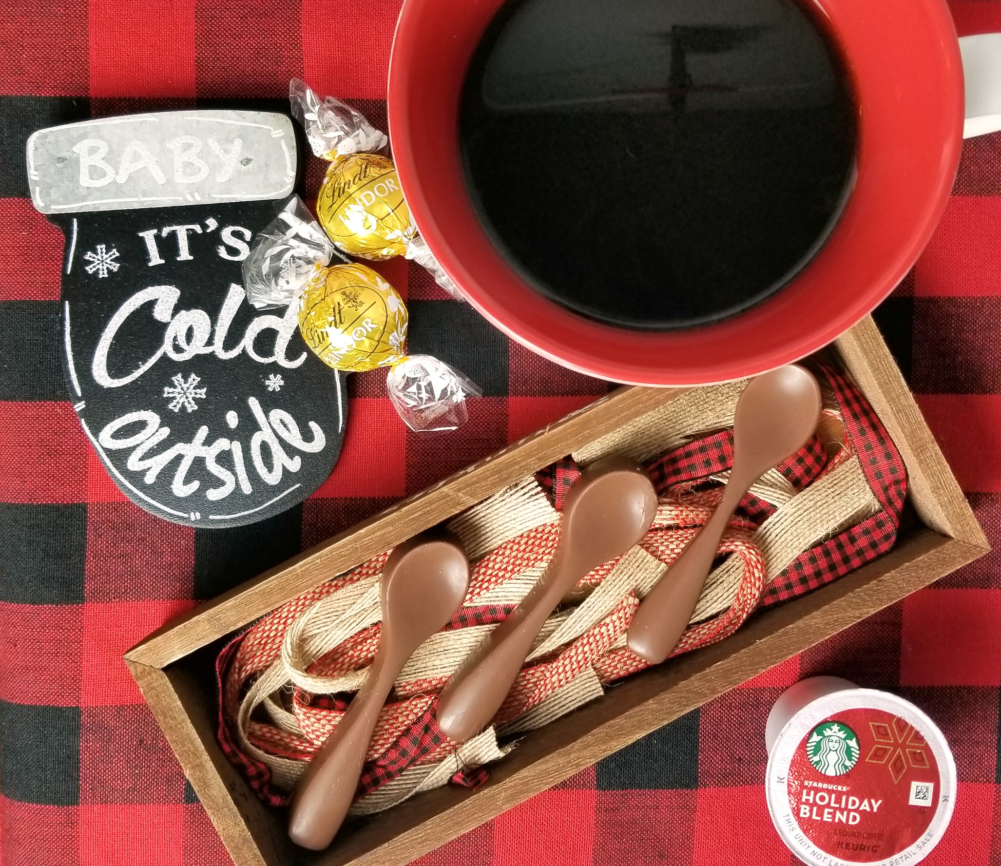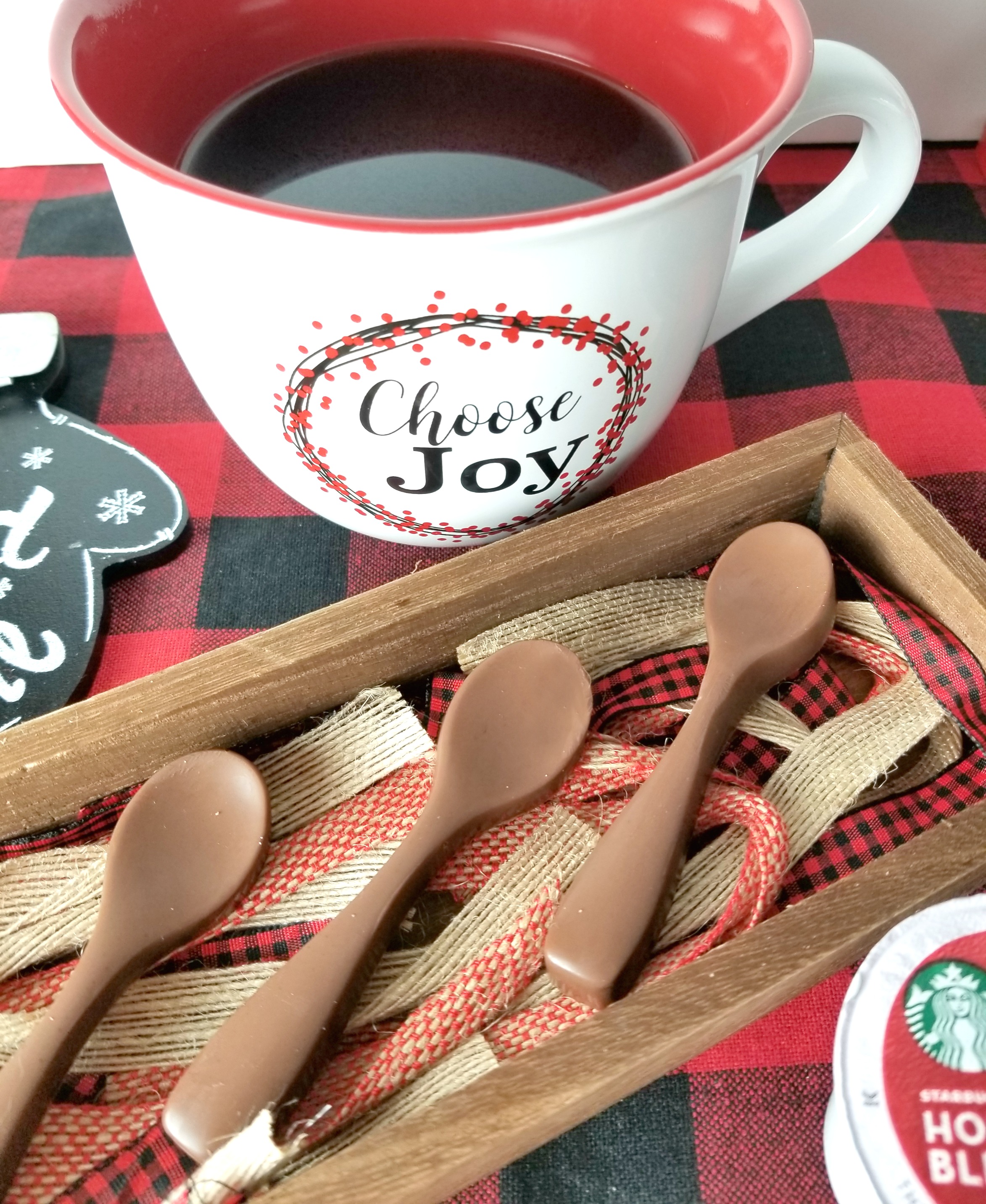 These chocolate spoons are a great idea. I love to drink coffee all day. I will have to pick up some Starbucks Holiday Blend K-Cup pods.