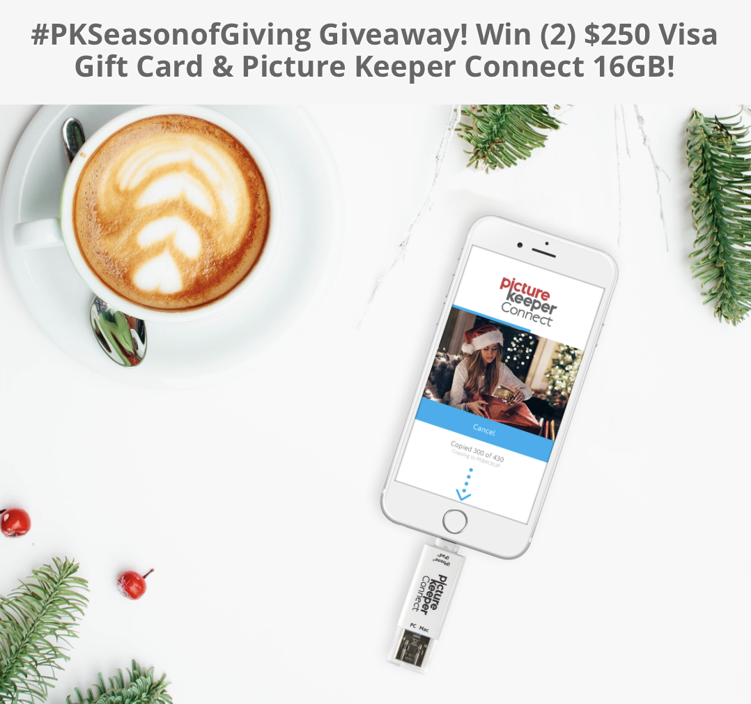 Picture Keeper wants to encourage people to give back this season and they are doing so by offering a great #PKSeasonofGiving giveaway where one person will WIN (2) $250 Visa Gift Cards & Picture Keeper Connect 16GB! Their hope is that the winner will keep one gift card for themselves and use the other to do nice things for others. I love the thought behind this giveaway and am so happy to be partnering with Picture Keeper again because I love supporting companies who do good things.