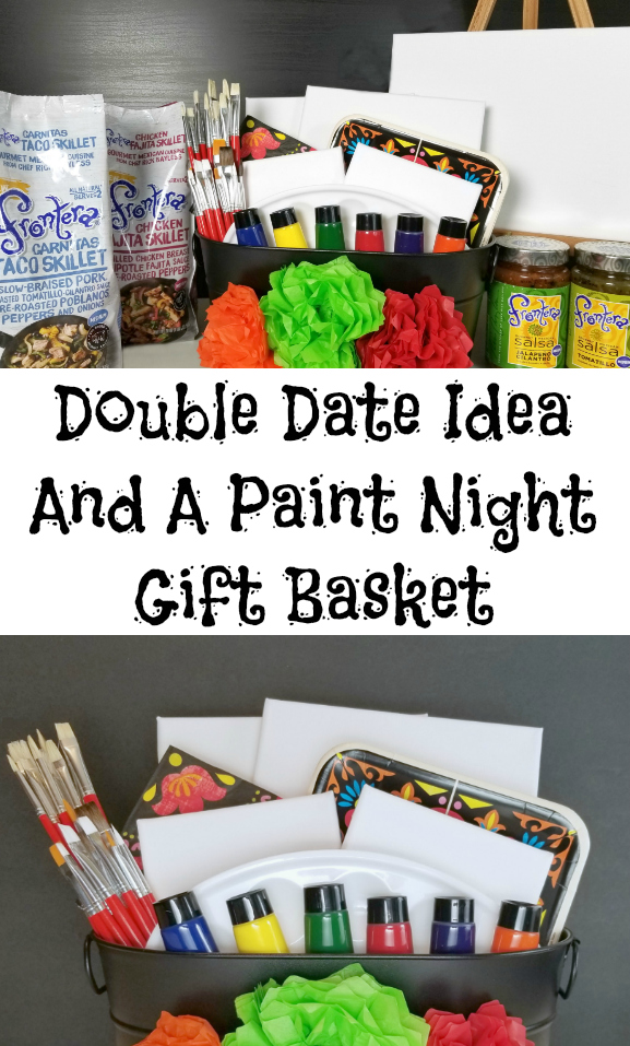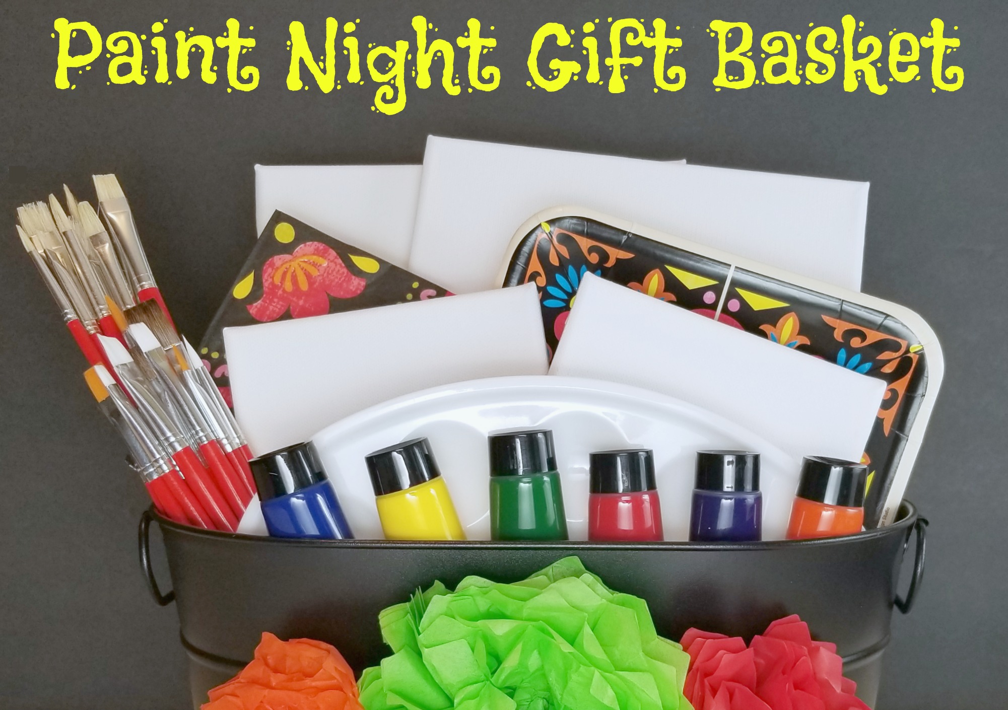 The paint night gift basket makes a great gift for a friend or your significant other. To make it for a double date night just put enough of everything for four people in the gift basket!