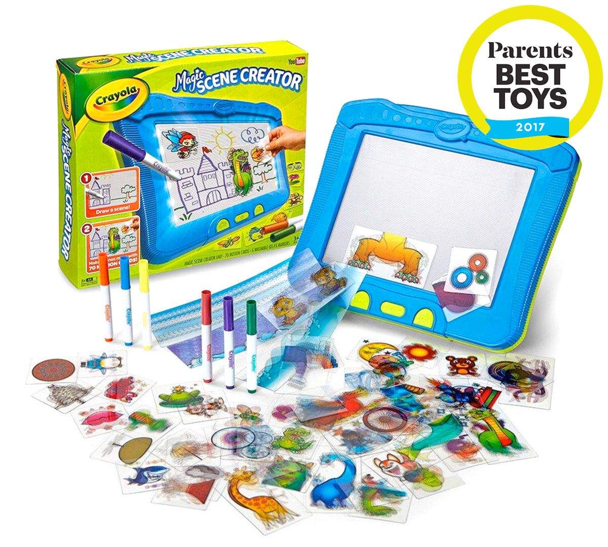 Turn still pictures into fun animations with Magic Scene Creator. To use, simply place any of the 70 included Motion Cards on the tablet screen and watch the cartoon drawings come to life. You can also make your own drawings and animate them using the Motion Cards .The Magic Scene Creator comes with six Gel FX Markers so you can draw directly on the screen or enhance the Motion Cards with your own embelishments–create your own car with wheels that appear to spin or draw a cool bird with wings that appear to flap! When it’s time for something new, simply wipe the screen and cards clean with a damp cloth. This fun coloring gift set is a wonderful way to experience the magic of animation.