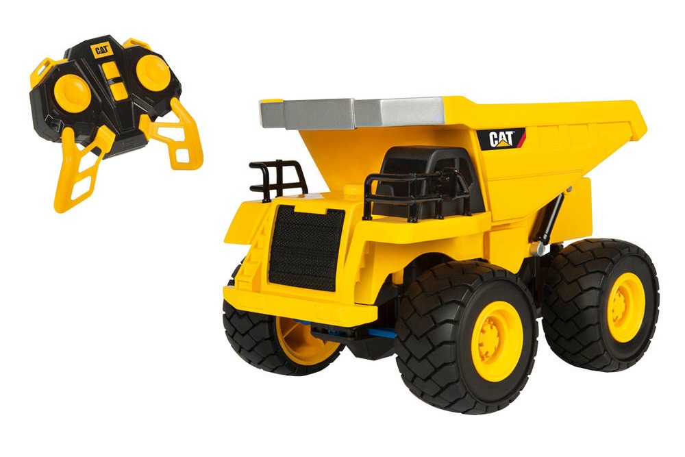 These full-function remote control Cat machines are designed to bring the construction site to your backyard! Scoop up and load gravel, sand or loose dirt with motorized dump bed and shovel.