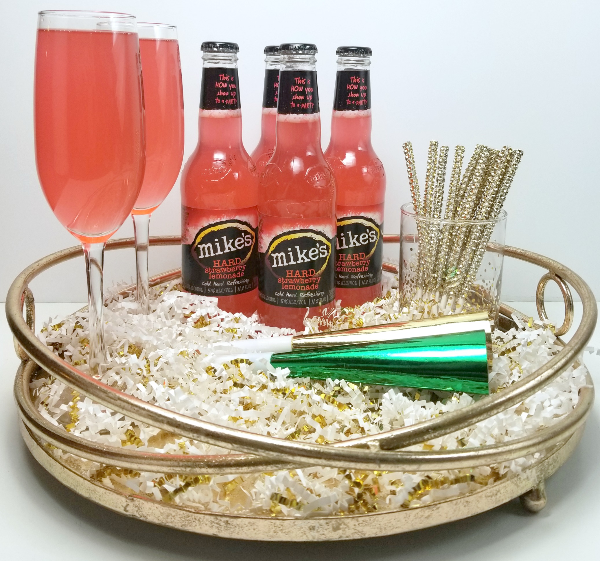Instead of toasting with regular champagne I added a fruity twist and brightened things up with Mike’s Hard Lemonade. Truth be told, I do not like champagne at all, so the midnight toast never really appealed to me because it was followed by a sip of something I didn’t enjoy the taste of. This year, though, I’ll be sipping strawberry lemonade champagne so I’ll happily be toasting with my glass of pink bubbly in hand. What I love most about this drink is that it’s super simple but adds a lot of happiness (and deliciousness) to the occasion. So, if champagne isn’t your drink of choice… I’ve got a simple fix and easy recipe you can use to ring in the New Year just right!