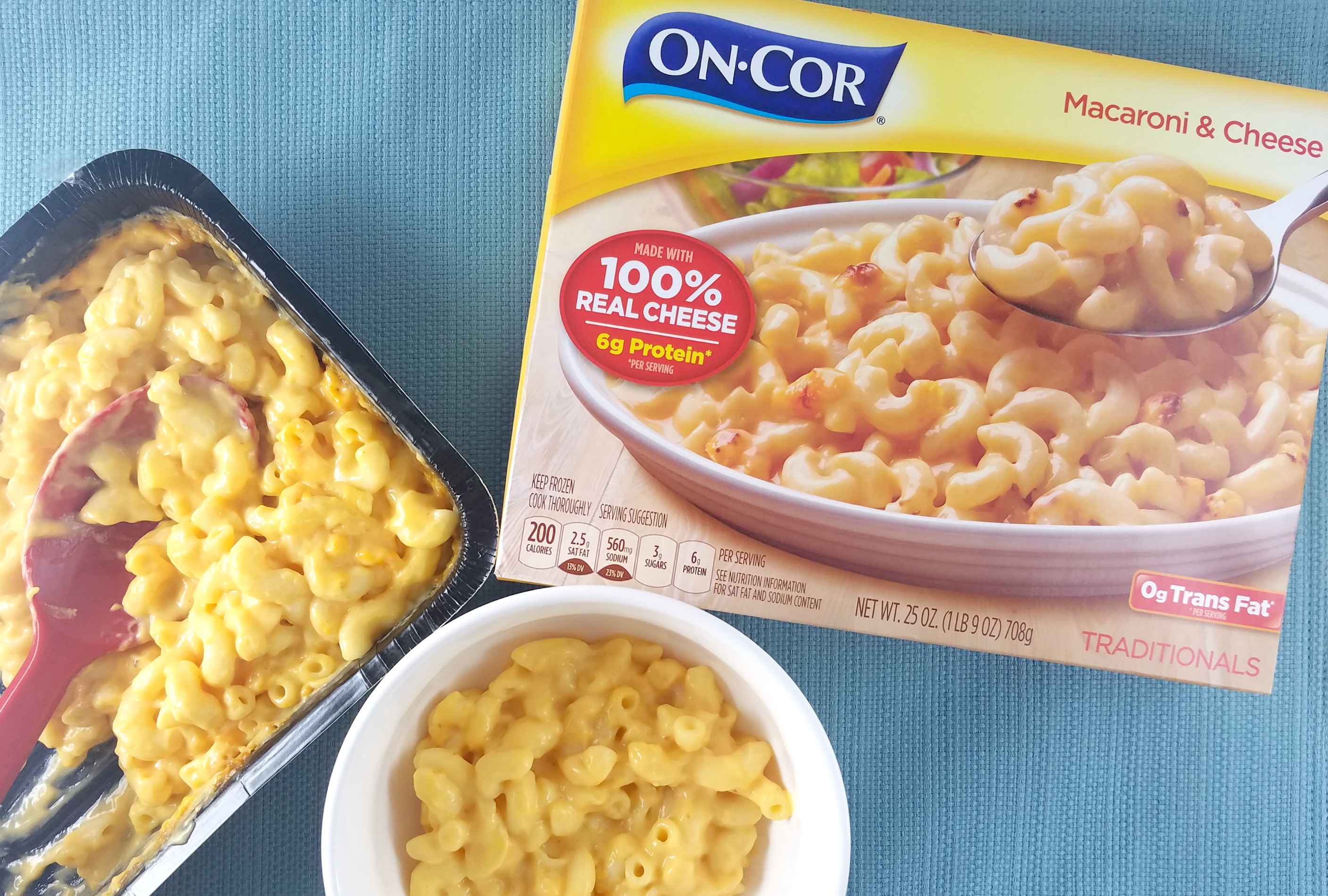 If you are busy, but still want to make meal time together a priority this year like I do, you’ll want to check out On-Cor’s line of entrées. On-Cor is just a freezer away for an always easy, always satisfying and always ready solution for “one of those nights.” Their frozen, fully-cooked meals are conveniently packaged and ready to heat and serve so you can spend more time making memories and less time in the kitchen. The multi-serve entrée products feature popular flavors and varieties including Macaroni & Cheese, made with 100% real cheese, which is one of our favorites.