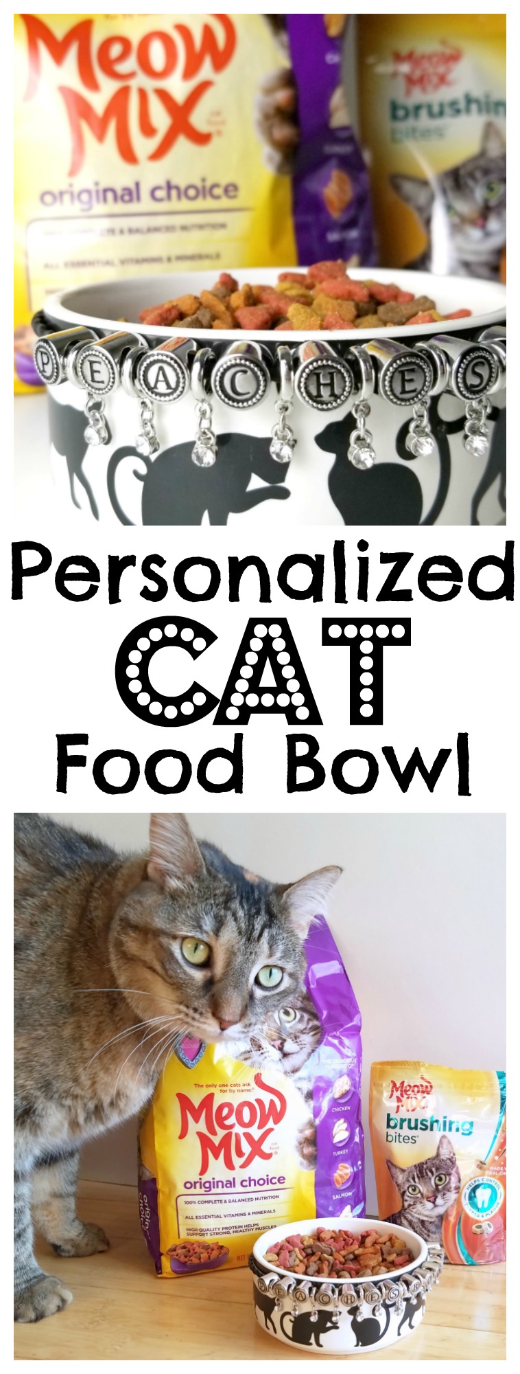 What a cute bowl. Your little fur baby seems to be enjoying the new bowl and food. Meow Mix is a favorite of ours.