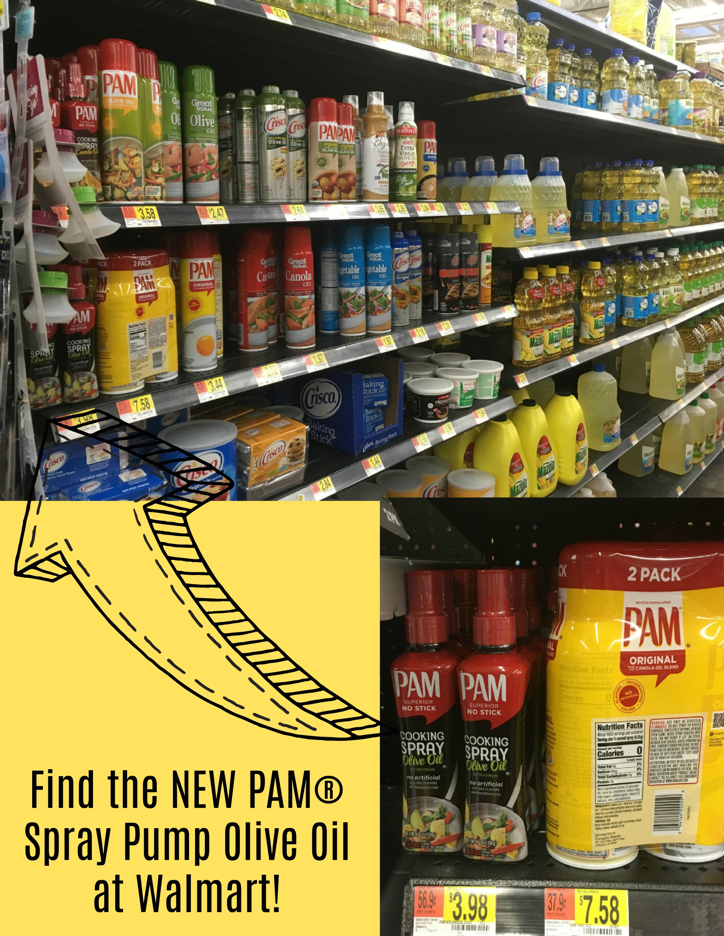 You can find PAM Spray Pump Olive Oil at your local Walmart and, while supplies last, use Ibotta and earn $1 when you buy one (1) PAM Spray Pump Olive Oil or Canola Oil.