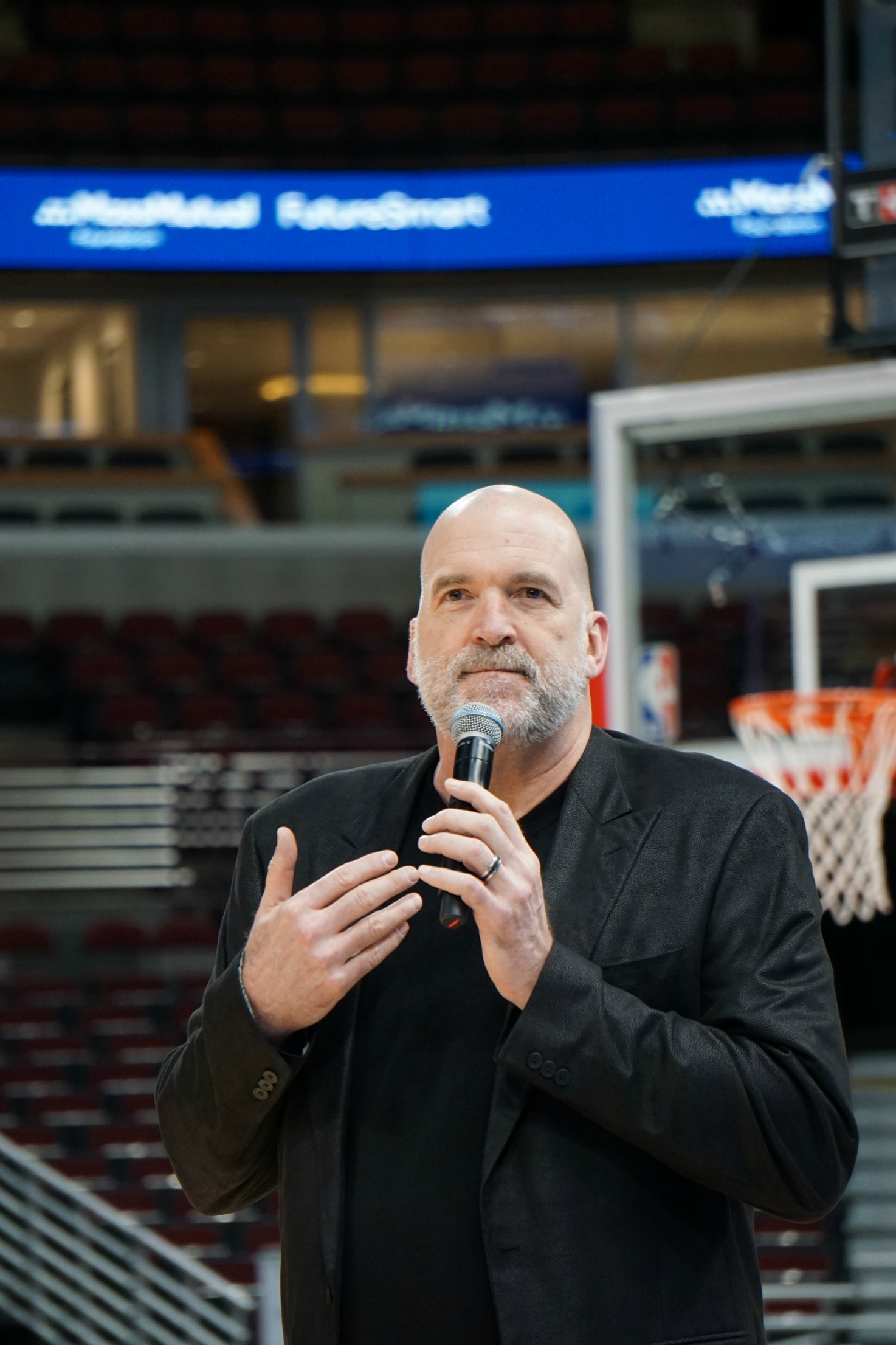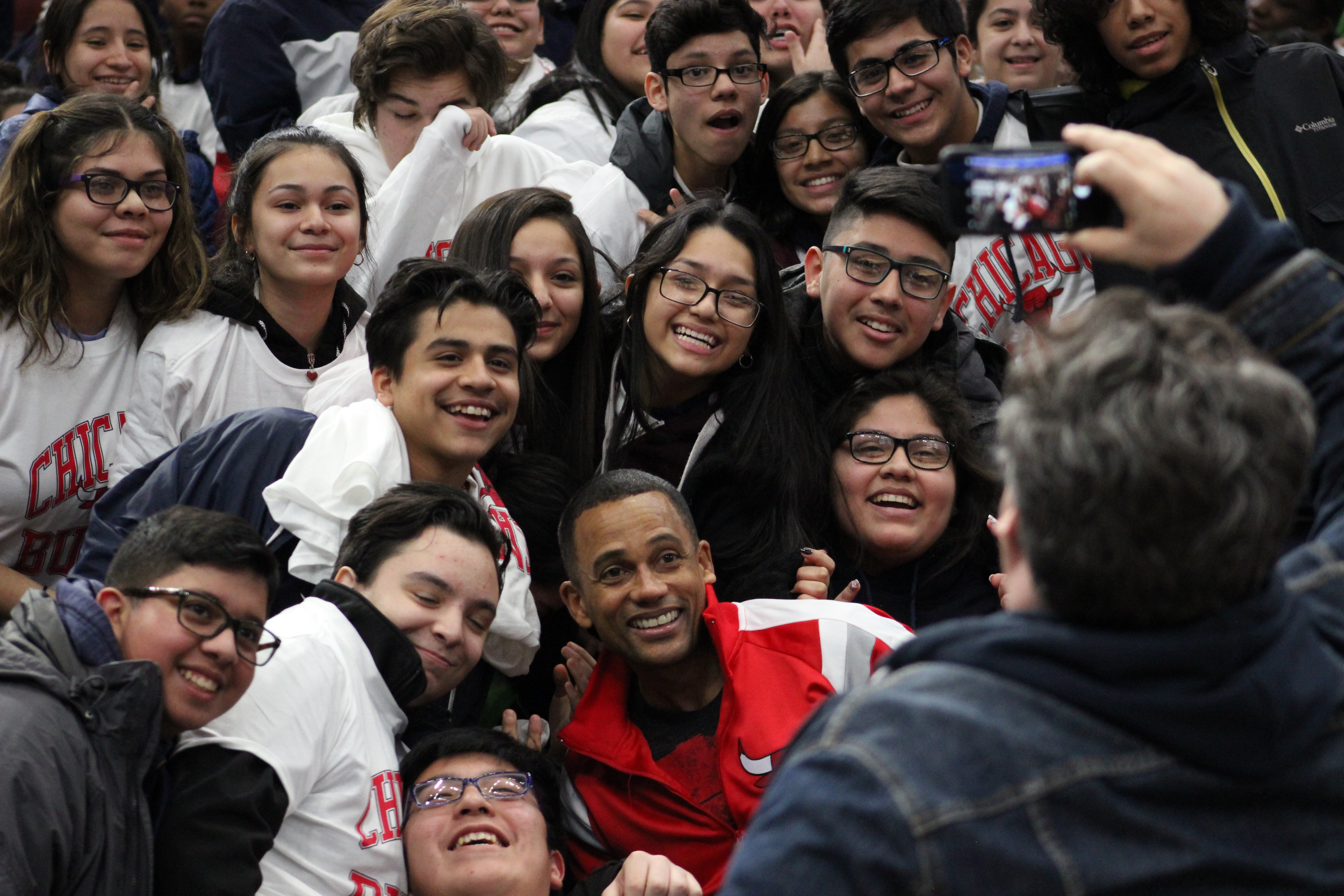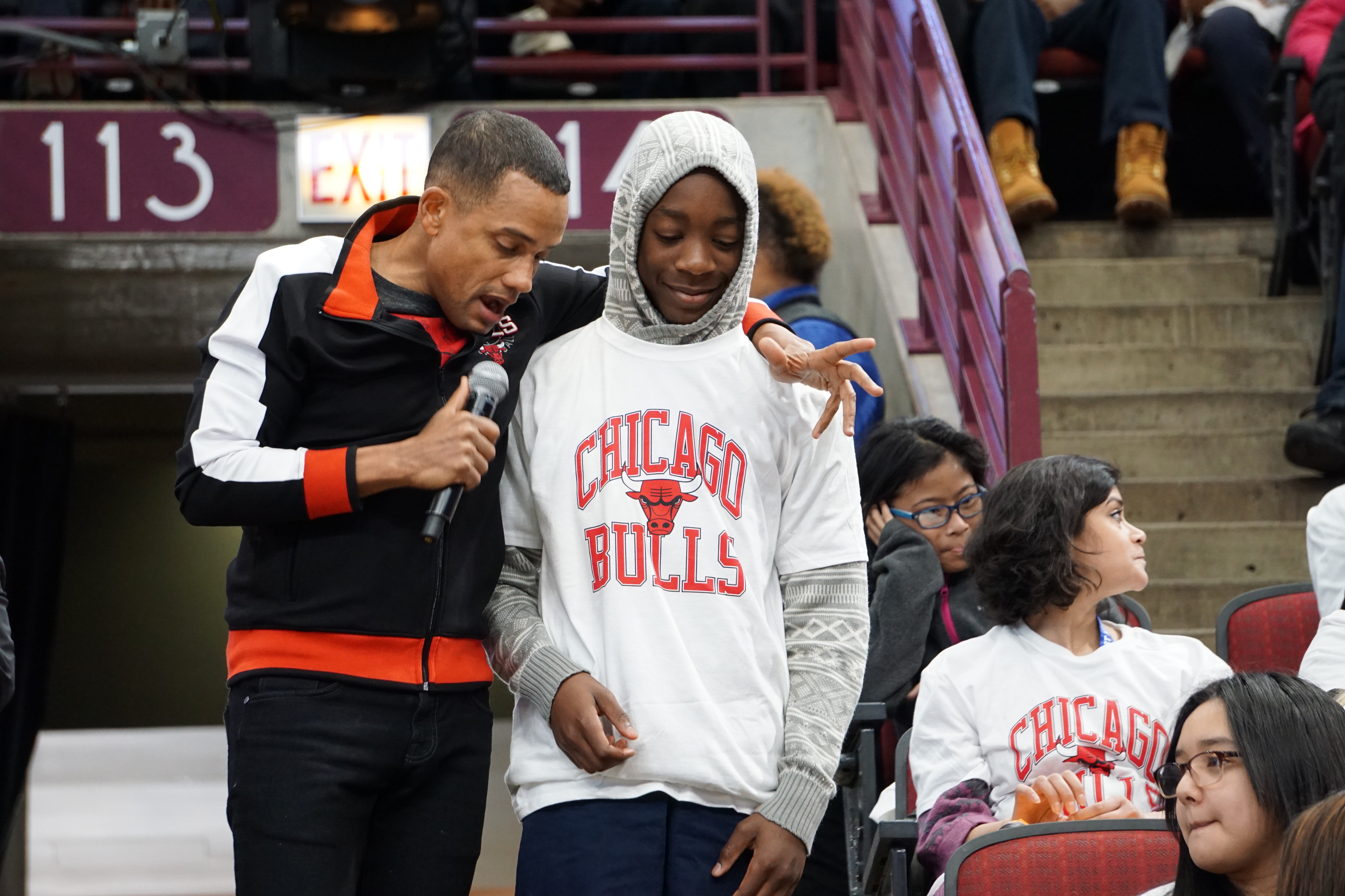 In addition to Harper, kids heard from Bill Wennington, a retired Bulls basketball player. The two talked about saving money and the importance of education. They also spoke about the many dreams of teens wanting to be ball players when they grow up and the realities of professional sports. To encourage continued education, they pointed out that most basketball players are bankrupt within five years of retiring and that the top CEOs in our country make a lot more than basketball players do.