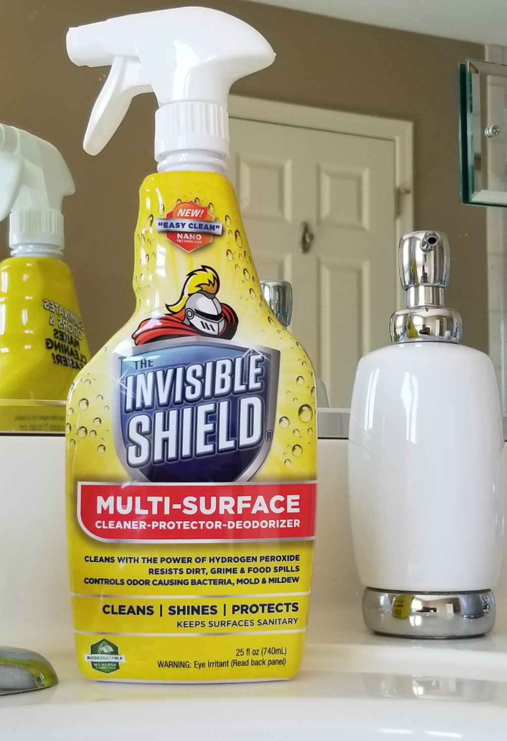 If you are spending time cleaning you want to use products that work well and make cleaning easy. I love the line of Invisible Shield® products that shield and protects glass and other surfaces because not only do they work, but they minimize cleaning time in the future by protecting against re-soiling and stains without all the harsh chemicals. When you go back to clean the second time, you’ll notice far less soiling, dust and spotting and how effortless it is to go over the surface. The Invisible Shield® Marble & Granite Cleaner and Protector even leaves a lustrous shine that will last longer than any other Marble or Granite cleaner! Their products also prevent corrosion around water areas such as faucets, sinks, shower doors, wall tile, and tubs, extending the life of hard surfaces & fixtures. Anything that protects our home investement and lets us spend less time cleaning the shower and more time cuddling on the couch with the kids is a must-have if you ask me!