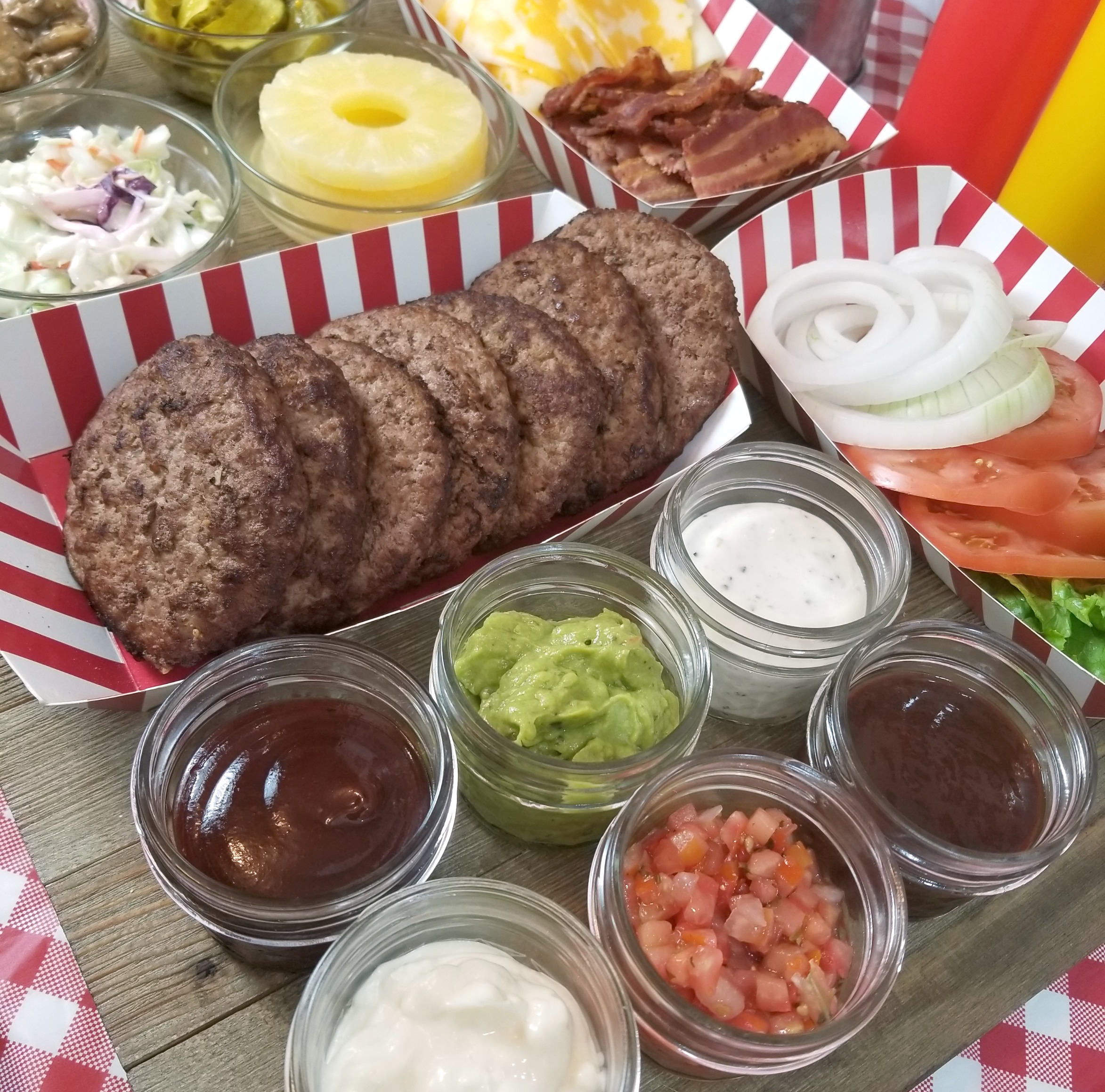 Other toppings you could add include onion straws, chipotle mayo, hot sauce, fried green tomatoes, hummus, and more. Maybe even take a poll to see what your guests love on their burgers. That way you can have all their favorites out.