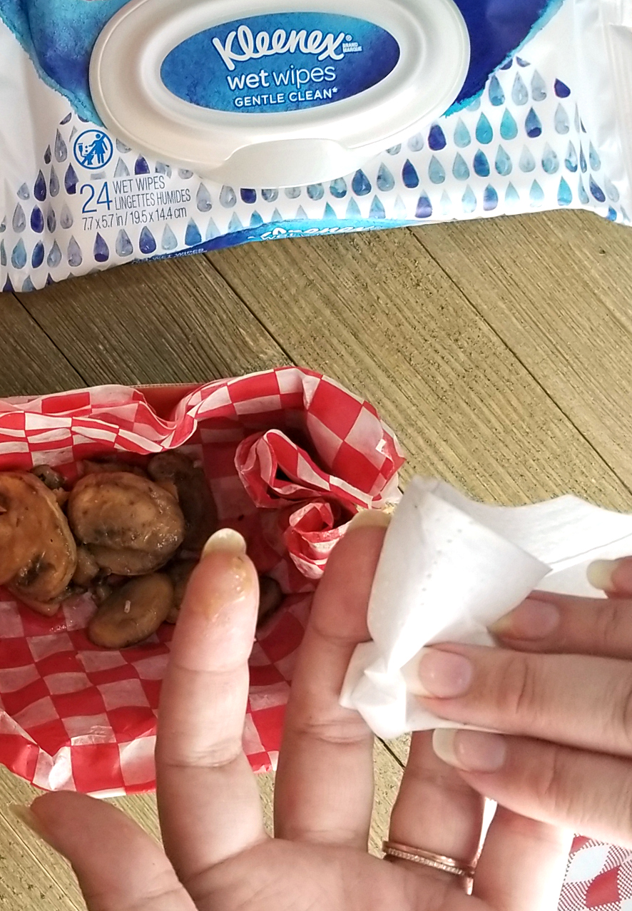 Setting up the burger bar is almost as fun as watching everyone try to eat the messy burgers lol. The Kleenex Wet Wipes are perfect for the messy hands and faces of adults. I like that they don’t contain any harsh chemicals and they come in small packs so I can easily keep them in my kitchen drawer and purse.