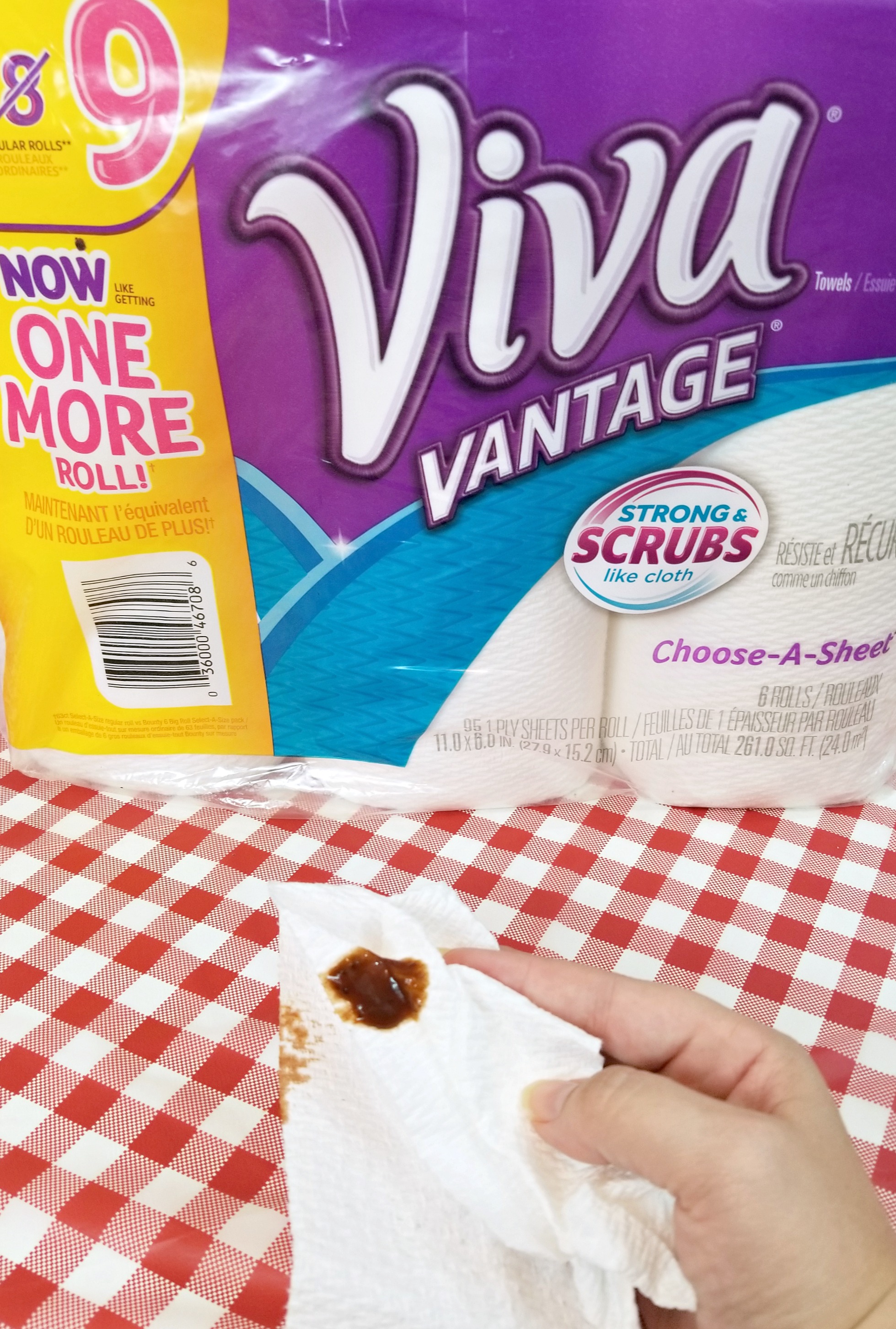 Once I picked everything up from the table I just used the VIVA® paper towels to wipe up the drips and spills from the cute checkered picnic tablecloth I had used. One swipe was all it took for the paper towel to pick up drips of sauce, salsa and more! BBQ messes are no match for VIVA®.