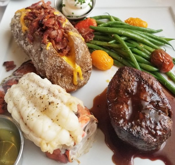 For our second night in town we got dressed up and went to the Table Restaurant which is an elegant steakhouse. We started with crab cakes for an appetizer, enjoyed some freshly baked bread topped with herbed butter, and then I had the Filet & Lobster Tail while Sinisa had the Lamb Chop. Again, it was another delicious meal!