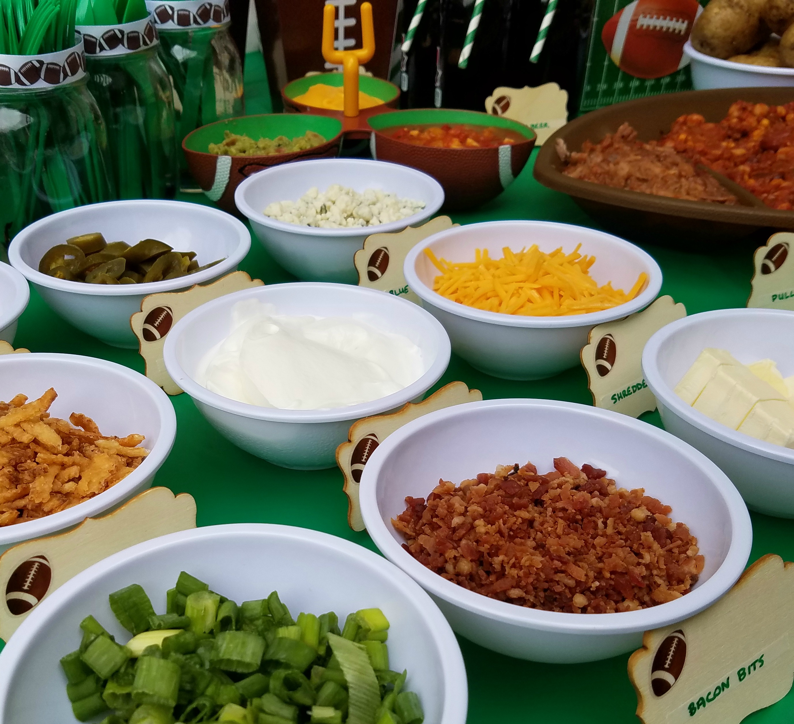 Looks like a great football party. Your potato bar turned out great! Potatoes are so good with many kinds of toppings.