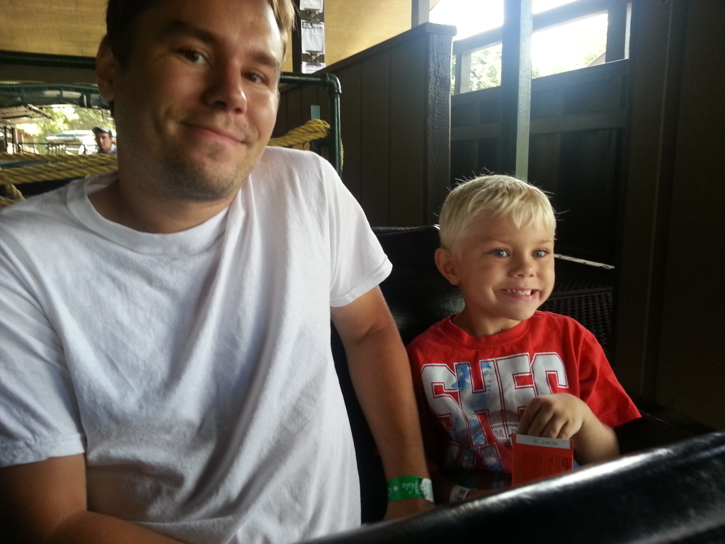 Guests staying at Timber Ridge Lodge can enjoy full access to Moose Mountain Falls indoor waterpark and the outdoor pool areas. The indoor waterpark is perfect for rainy day fun and easily won the “favorite thing to do” title from the boys. I like that the indoor waterpark was split in to two pools- one that was great for babies and toddlers and one for everyone else. The deeper one had basketball hoops on one end and Jacob ended up spending most his time there. There are two large water slides- a tube slide and a raft slide- that the boys loved going down along with two smaller slides. There was also an “adults only” hot tub (though I didn’t have a chance to try it out) and a lazy river. The outdoor pool areas are a little small in my opinion but if it’s nice out you probably don’t want to be sitting around the hotel anyway! Parents of young children will appreciate that the little kids have a separate pool area to play in.